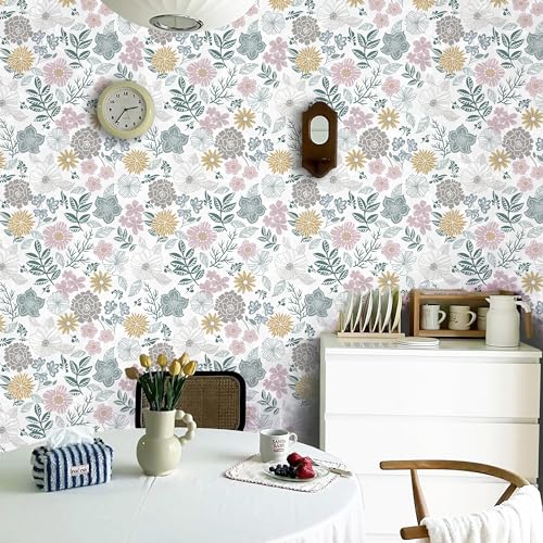 - ¡¼SIZE¡½: 17.3"x78.8"=9.47 sq.ft, colorful floral wallpaper made of upgrade material vinyl, thick and durable. It is recommended to buy LARGE SIZE, because buying enough rolls at one time can avoid the color difference caused by different batches