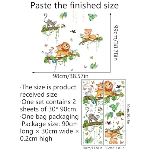 - The elements contain various forest animals such as lion, tiger, leopard, ring-tailed lemur, birds, butterflies and green plants such as palm leaves, hanging vine. Cute and beautiful wall decorations.