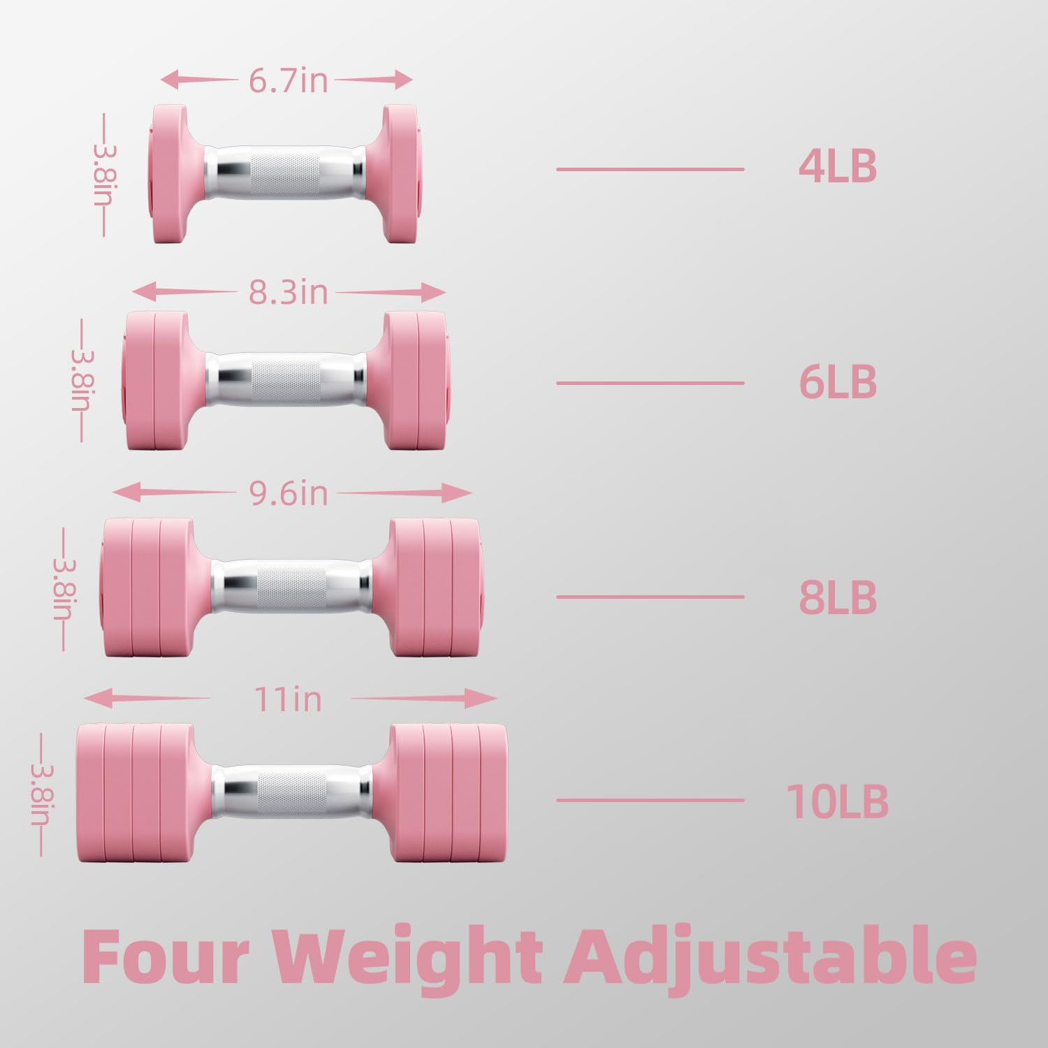 - [Instant Adjustment In Second from 4 to 10 pound] The innovative structure of RUNWE dumbbells set of 2 allows you to quickly adjust from 4 to 10 pound, allowing you to increase/decrease the weight in the blink of an eye! Greatly improves the efficiency of your training.