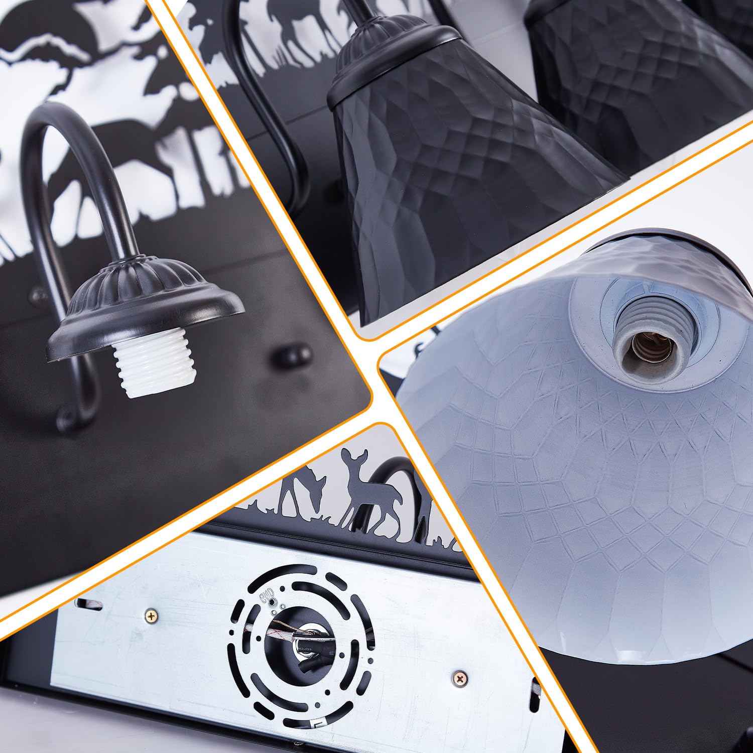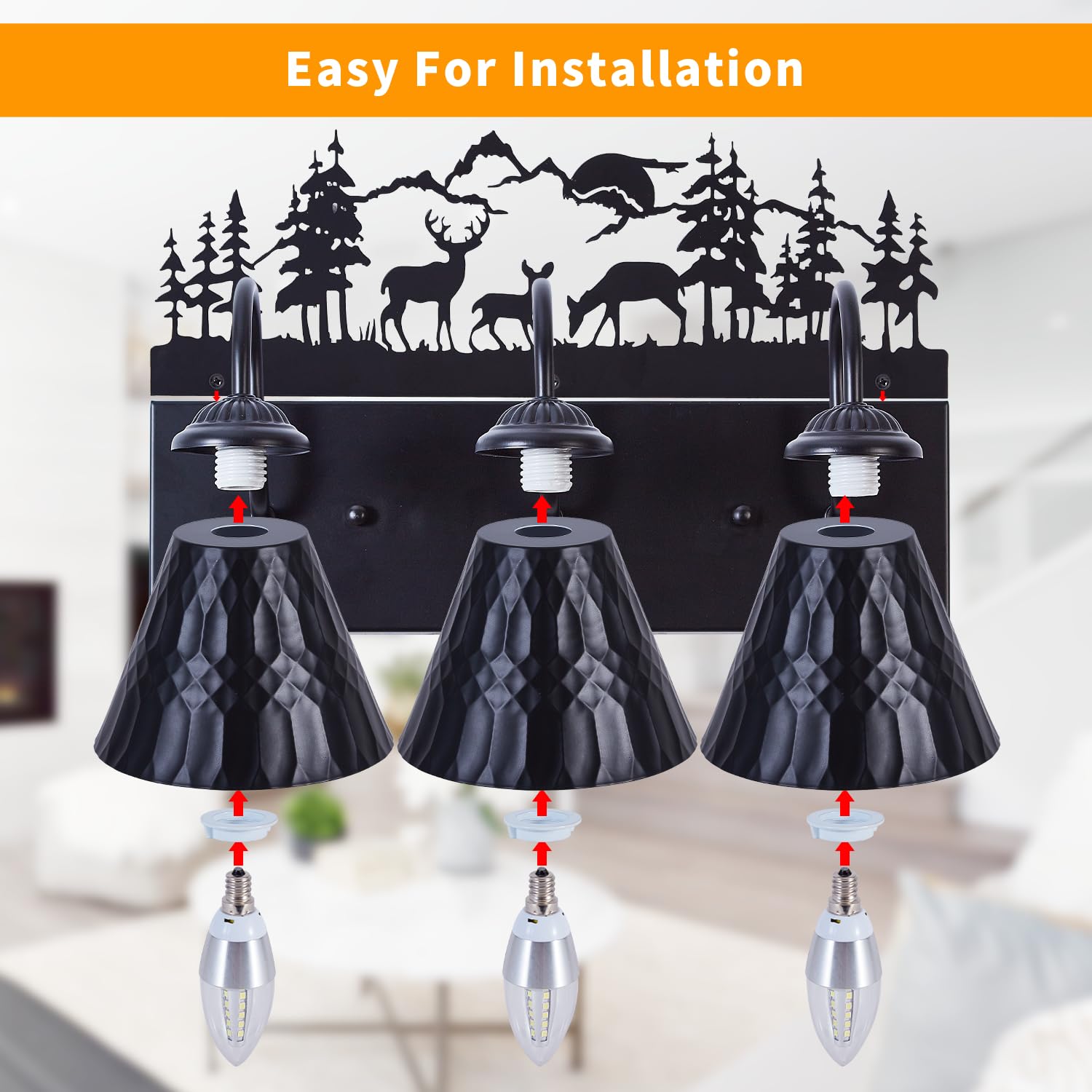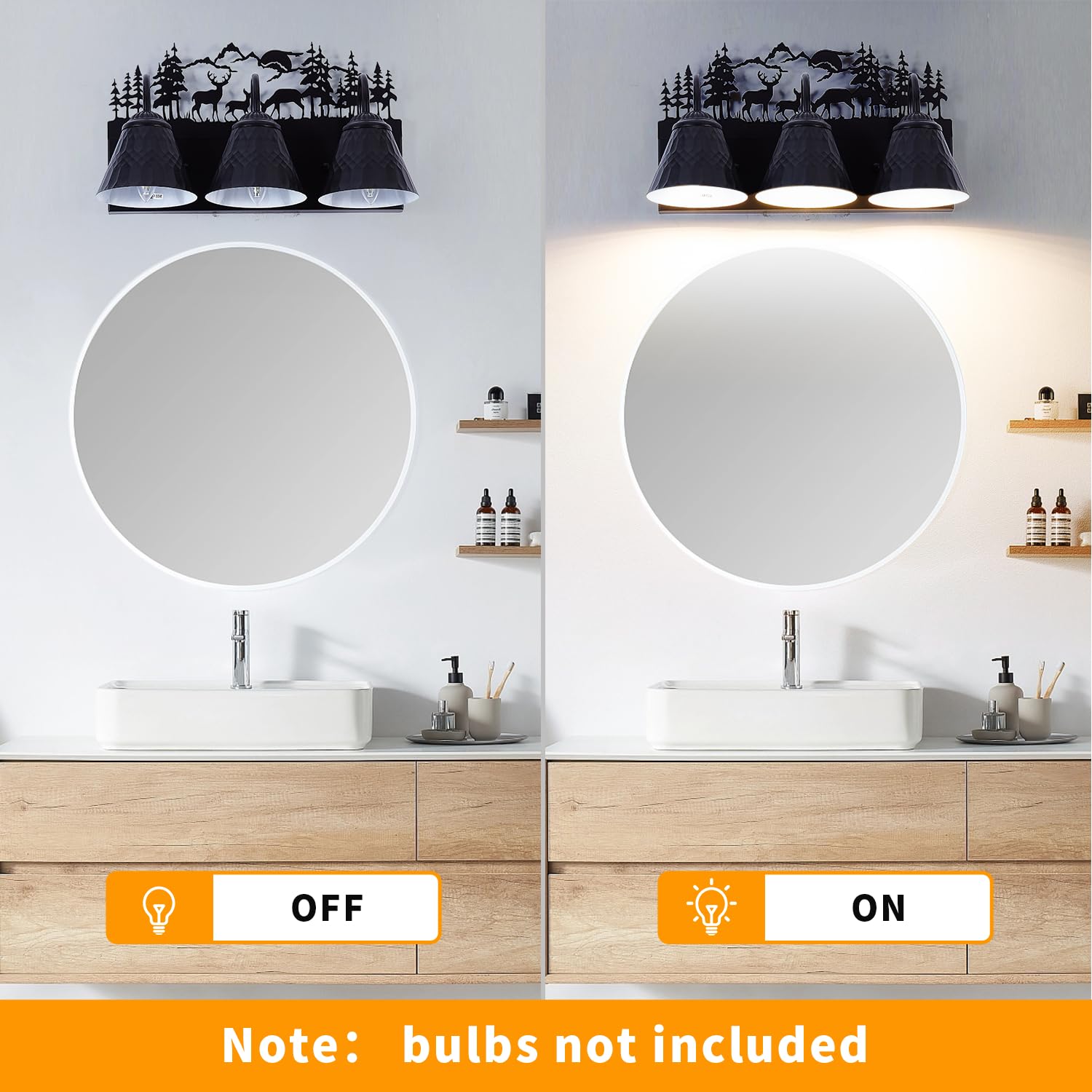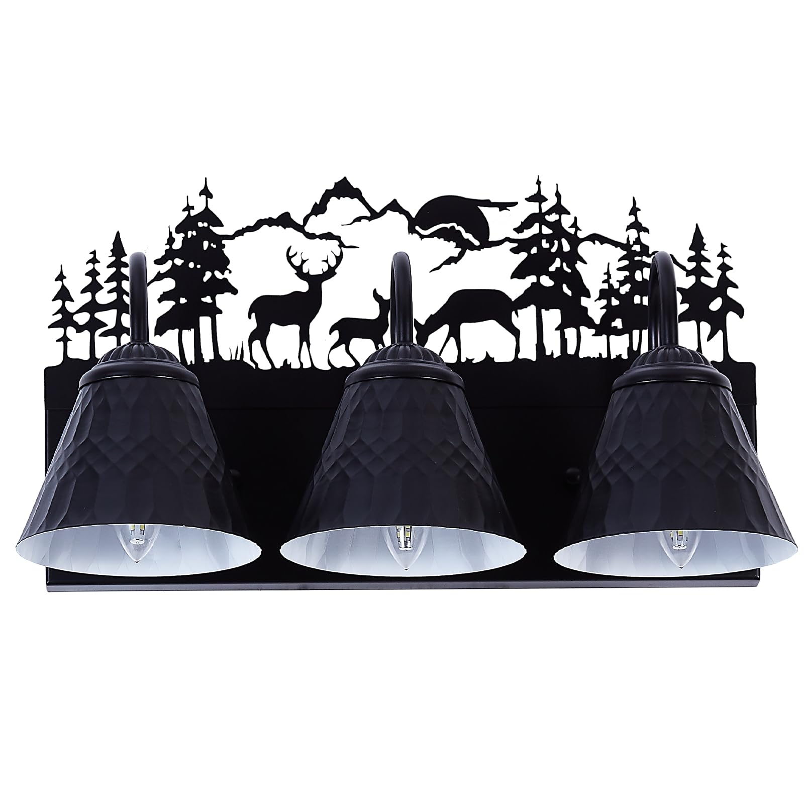 Rustic 3-Light Black Vanity Light Fixtures with Deer Design, E12 Base Farmhouse Bathroom Lighting for Mirror, Cabinet, or Dressing Table (Small, Bulb Not Included)