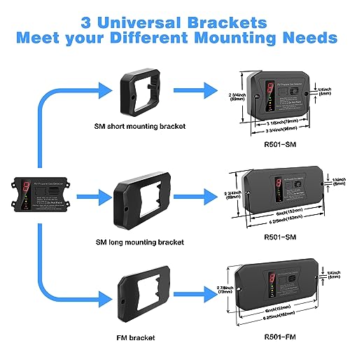- What You Get: 1x RV propane detector,1x universal surface mount long bracket,1x universal surface mount short bracket, 1x universal flush mount bracket, 1x lever-nut connector, 1x user manual, 6x screws.