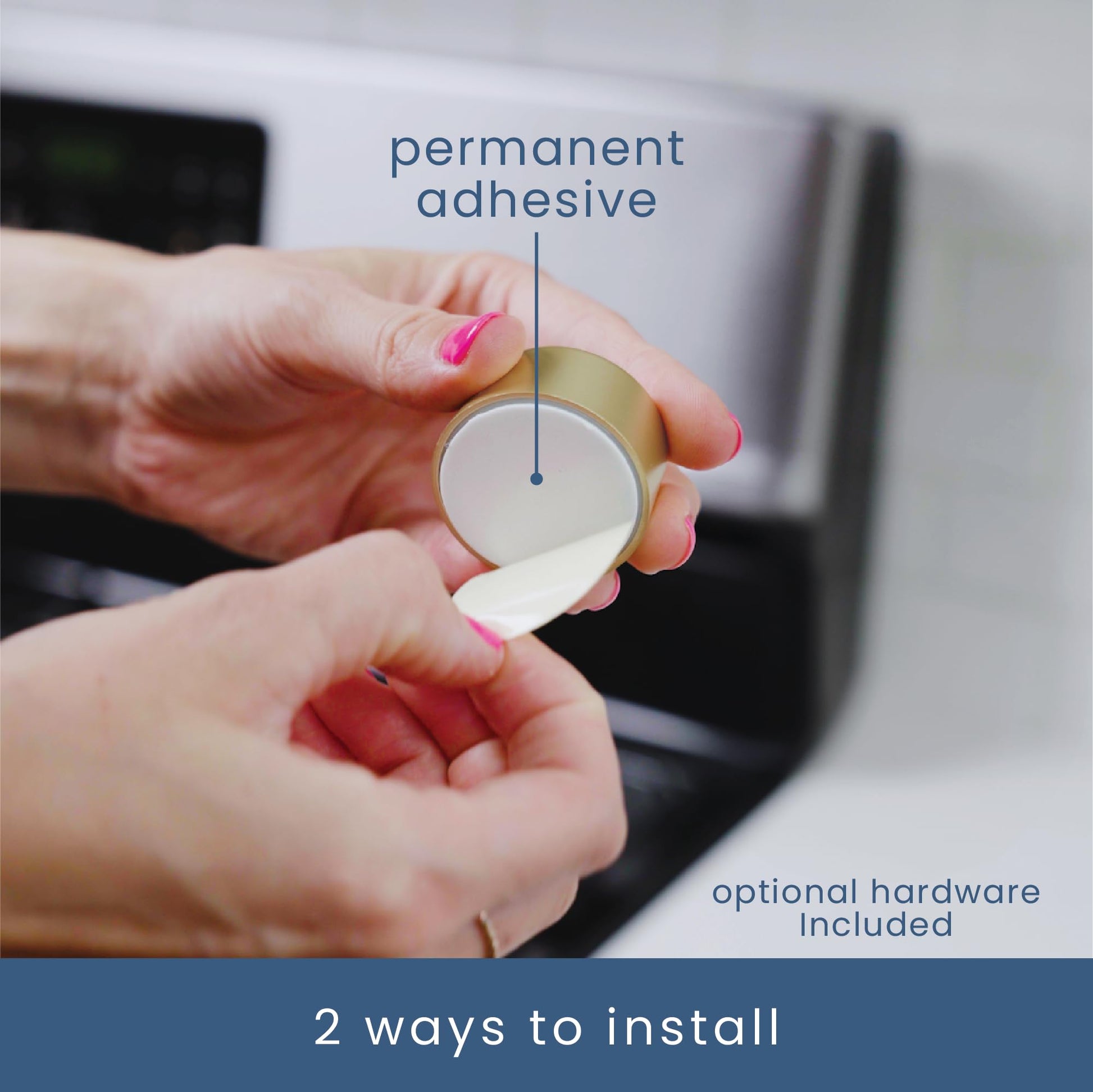 S&T INC. Round Adhesive Push Towel Hooks for Kitchen, Hand and Dish Towels, Brushed Gold, 4 Pack