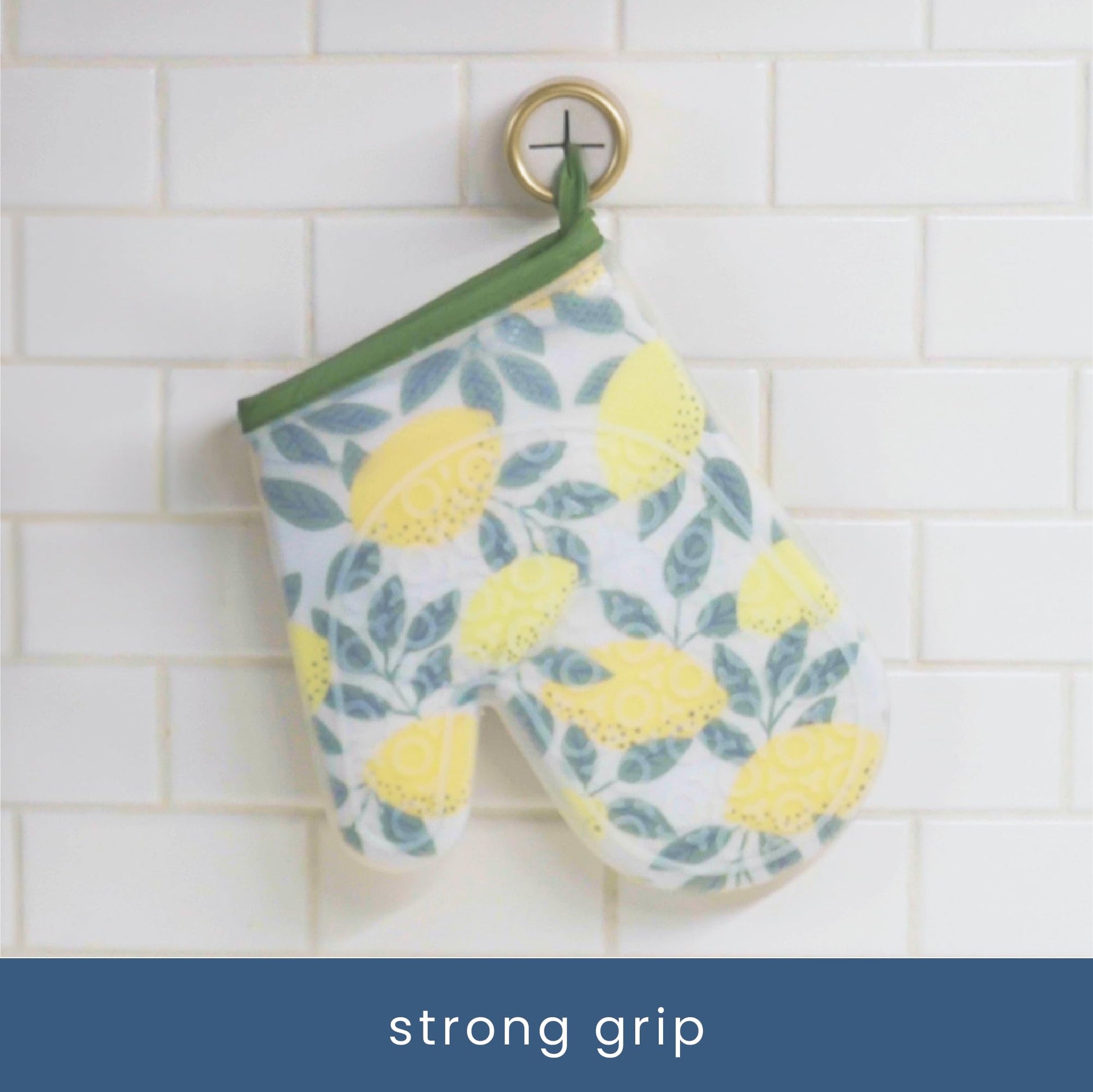 - Keep the kitchen organized with adhesive hooks for hanging hand or dish towels within easy reach