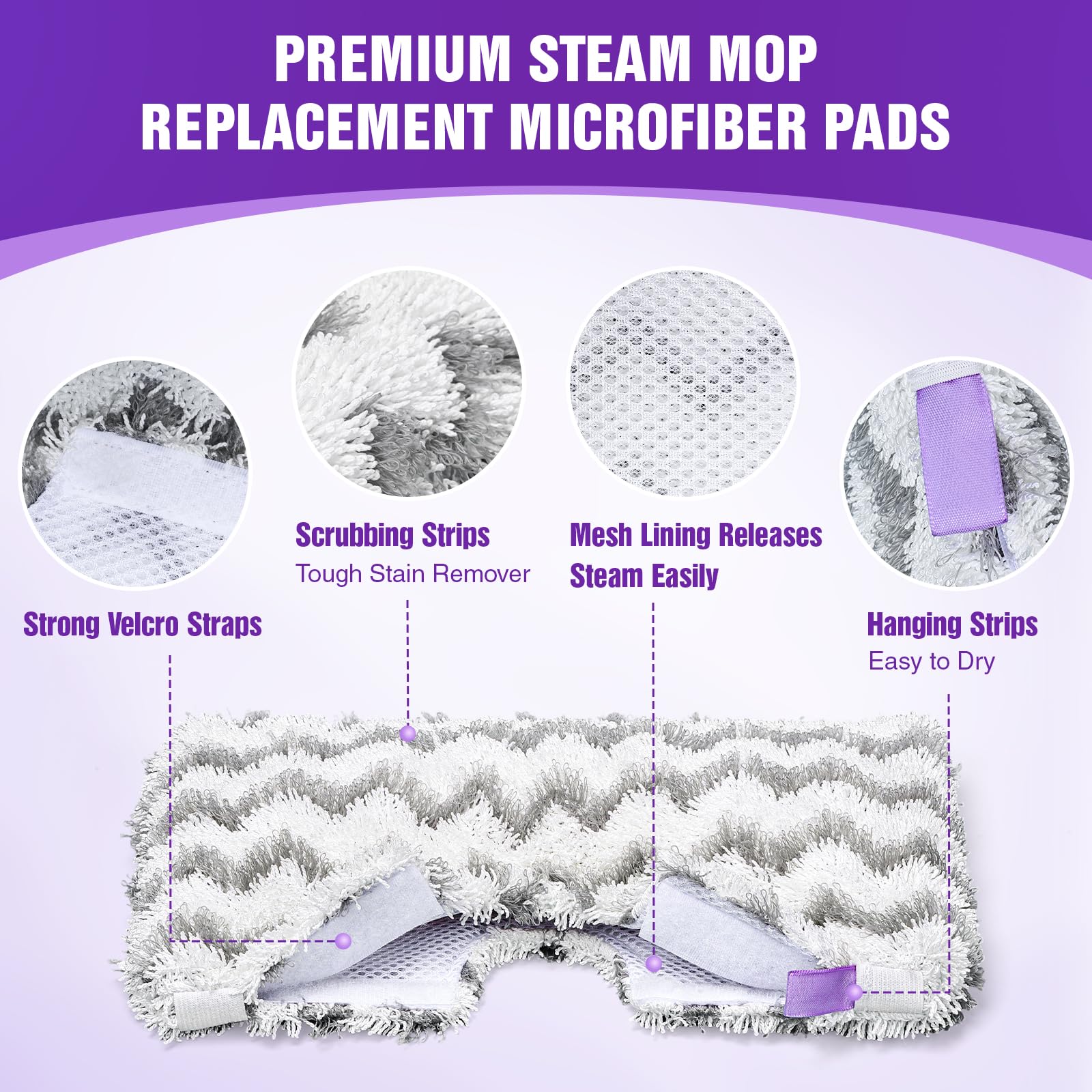 - 【Upgraded Premium Replacement Pads】 Our steam mop pads made from two materials: multilayer high-quality microfiber material for locking in moisture and dirt with strong water absorption, and scrubbing strips material for trapping pet hair and removing tough stains with effective cleaning. The sandwich mesh lining allows easier steam release.