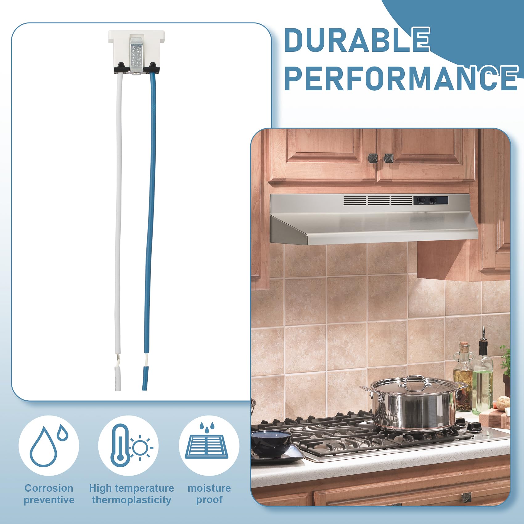 Details: Precise Compatibility This power outlet is designed specifically for Broan & NuTone exhaust fans, perfectly matching 10A 125V electrical requirements. The 18AWG wiring ensures stable power delivery, allowing quick restoration of your device’s functionality without compatibility issues. Safety-Centric Design Built to 10A 125V safety standards with heavy-duty 18AWG wiring for enhanced durability. The rugged housing maintains reliable performance even in damp or dusty environments, giving you peace of mind. Tool-Free Installation No tools needed—just snap it into place! The simple clip-on design makes replacing old outlets effortless, so anyone can do it in minutes. Durable Performance Corrosion-resistant brass contacts and a high-temp thermoplastic shell (up to 221°F/105°C) ensure long-lasting use. It stands up to steam, humidity, and kitchen heat without failing. Customer Service If you have any questions, our support team is ready to help. Whether it’s installation tips or product advice, we’ll respond quickly for a hassle-free experience.