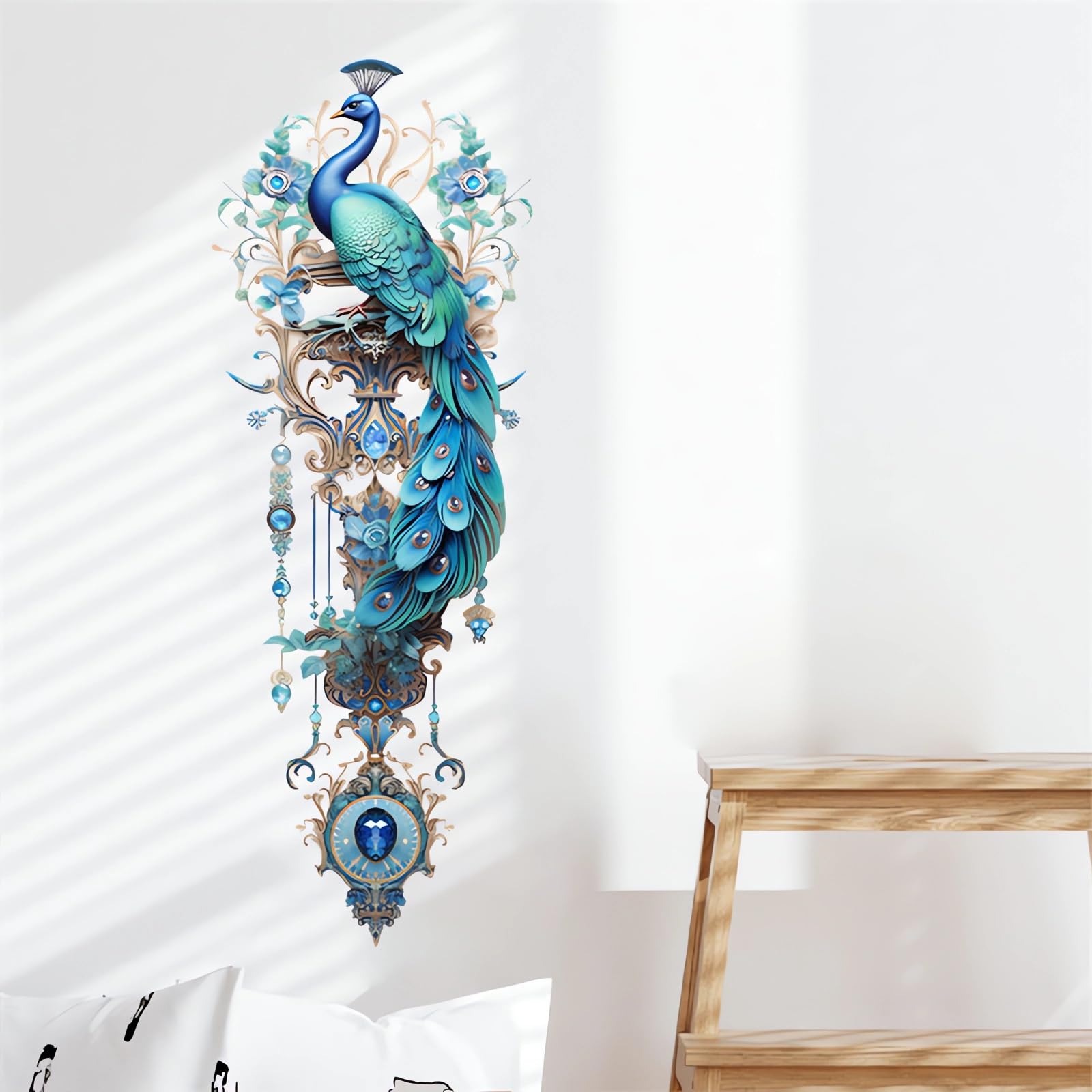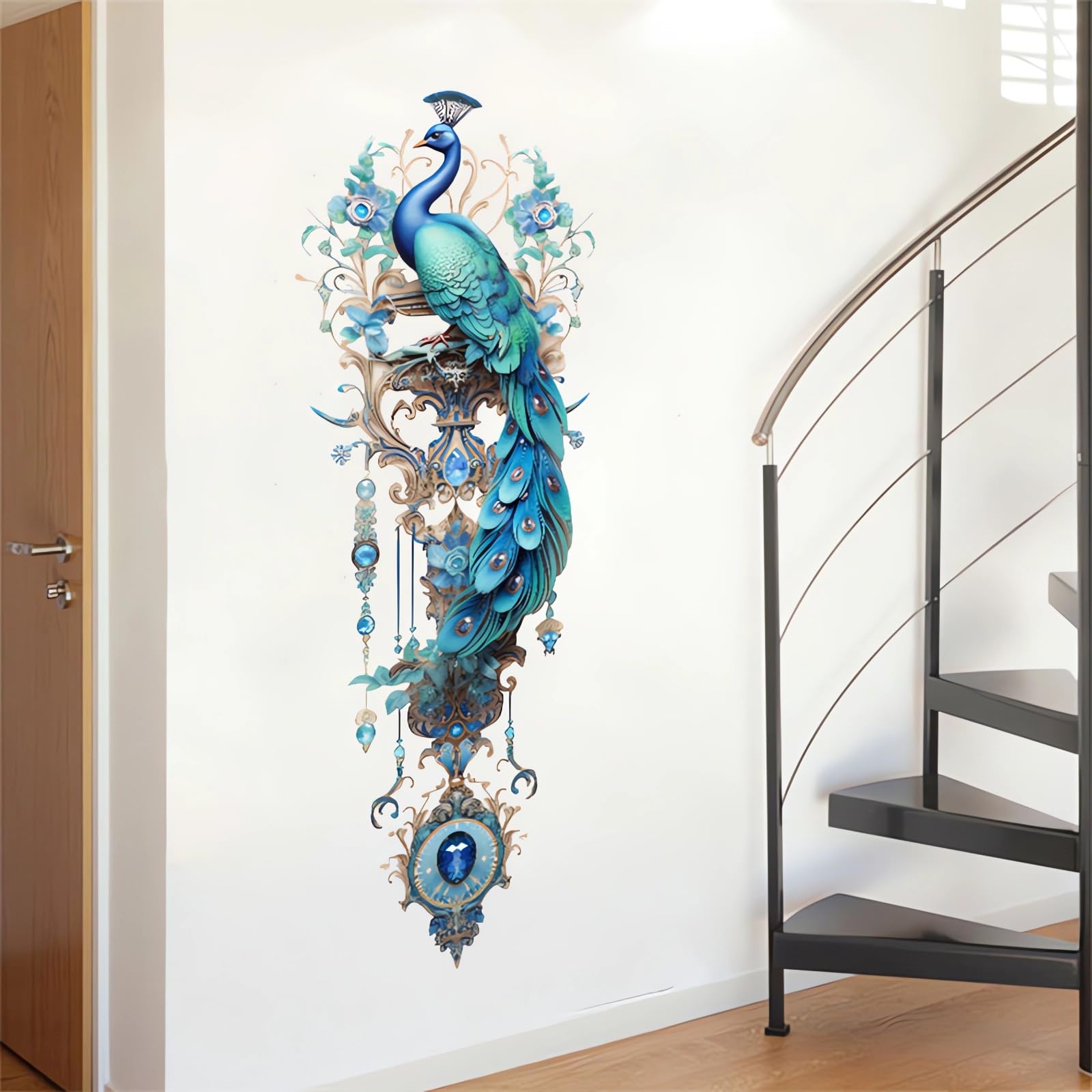 sacinora Gorgeous Blue Peacock Painted Wall Stickers, Peacock Pendant Art Wall Decals Removable Vinyl Peel and Stick for Living Room Bedroom Sofa TV Background Home Decorations