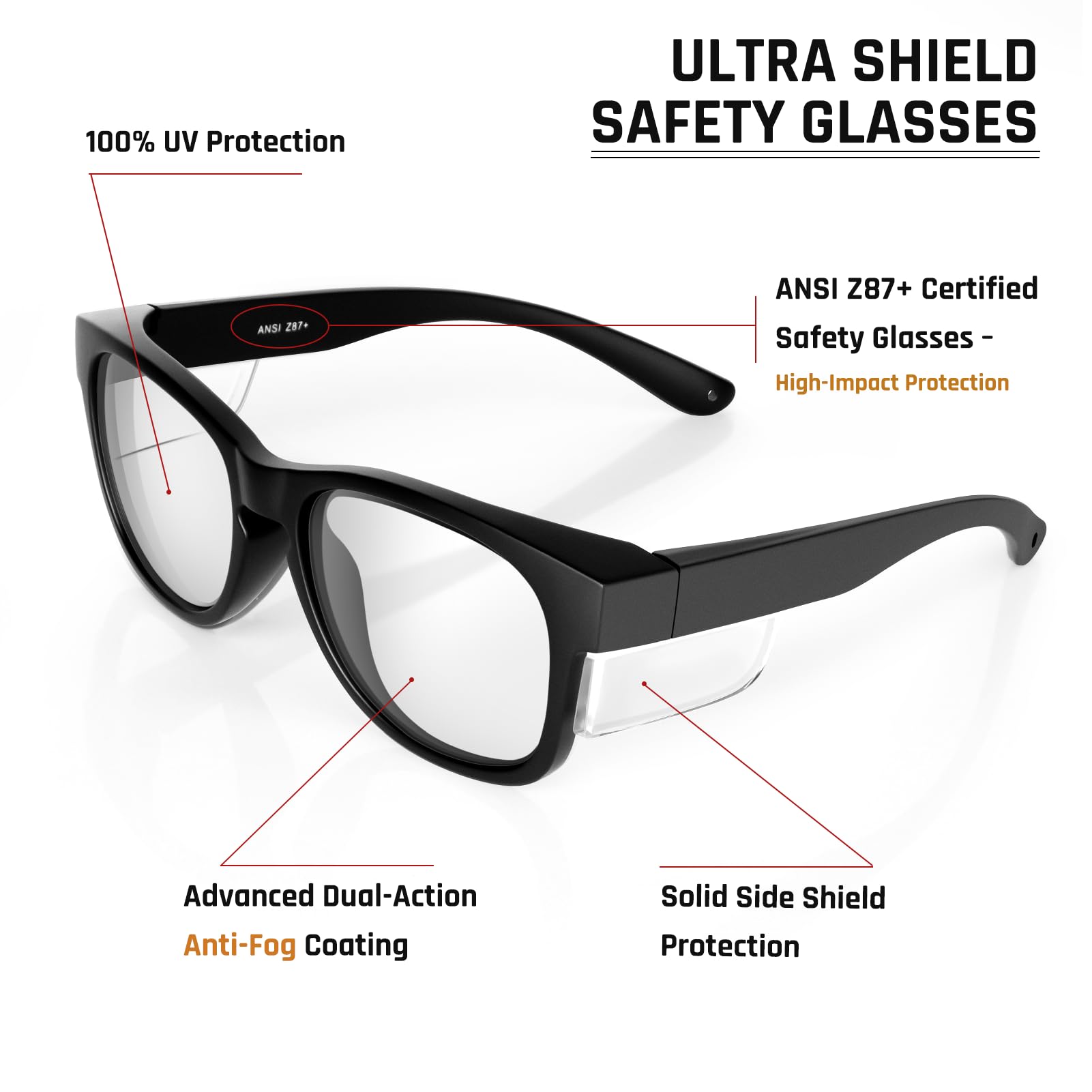 - SIDE SHIELD PROTECTION: Enhanced safety with wraparound side shields to block debris and UV rays; ideal for construction, woodworking, and outdoor use