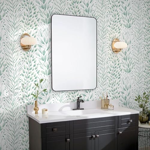 Safiyya Peel and Stick Wallpaper Leaf Contact Paper 78.7" x 17.3" Light Green Wall Paper Modern Self Adhesive Removable Wallpaper for Bedroom Bathroom Vinyl Rolls