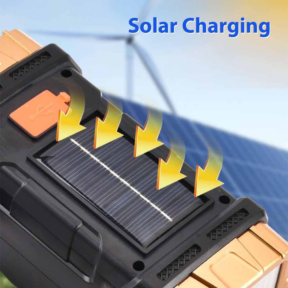 - Dual Charging Options & Power Bank Functionality: Rechargeable via solar power or USB (2-3 hours charging time), this flashlight ensures reliable performance even in power outages or remote outdoor settings. The built-in USB output allows it to double as a power bank, charging your smartphone or other devices in emergencies.