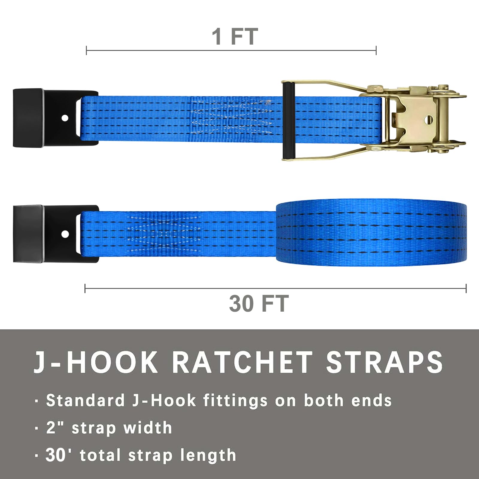 - Package Include: 2 inch Ratchet Straps Flat Hook Heavy Duty 30ft x4 Pack Blue