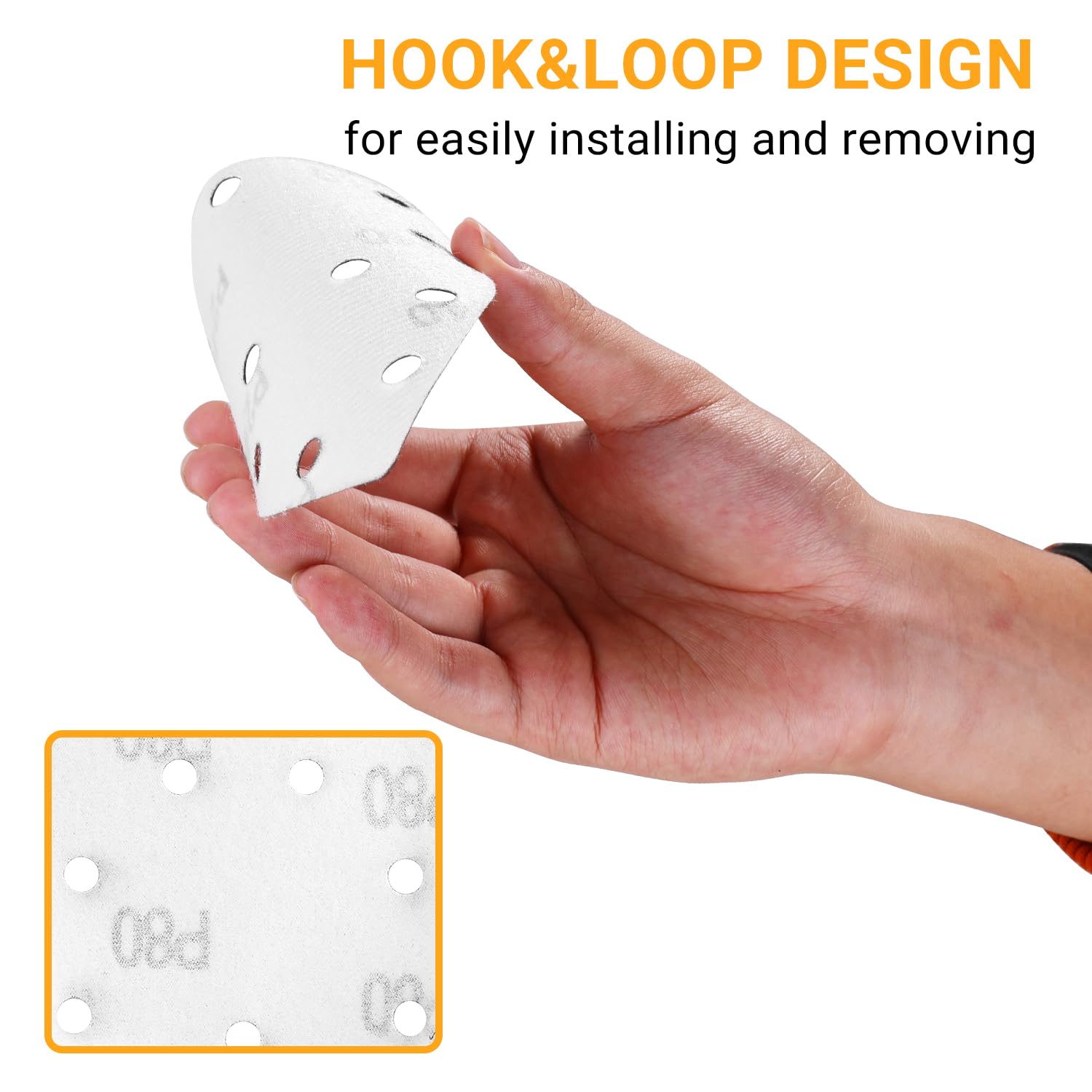 - Hook and Loop Backing: Designed with a hook and loop backing for easy attachment to compatible orbital and detail sanders.