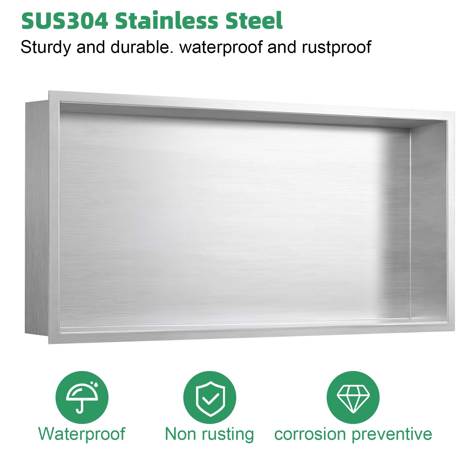 - 【High-quality materials】Shower niche are made of high-quality 304 stainless steel, the surface has been plated, Double rust and corrosion resistance,more durable, can avoid scratches off the paint and other issues.