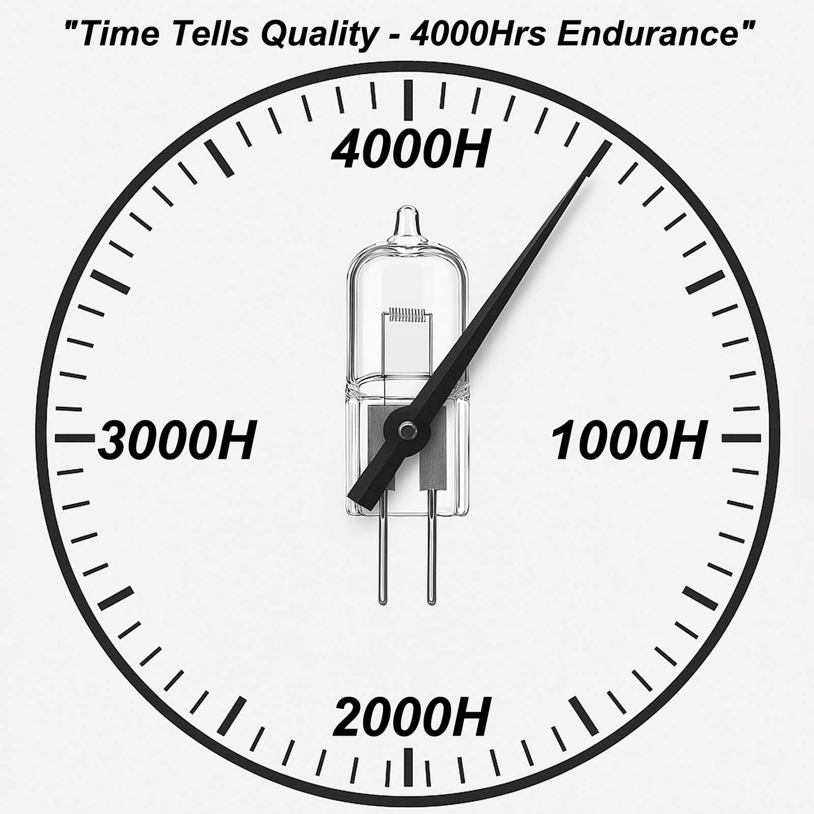 - Lamp holder: T4 halogen bulb, 5W, 12V. The lamp holder is G4 2-pin, with a rated lifespan (Hr) of 4000 and a luminous flux (LM) of 55