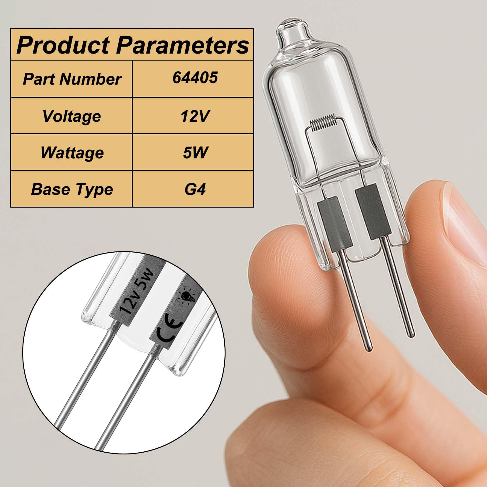 SANJOON 64405 12V Halogen Bulb 5W 55 Lumens T4 Halogen Transparent Bulb, Replace G4 Dual Pin Base, Compatible with Indoor Embedded Lighting, Track Lighting