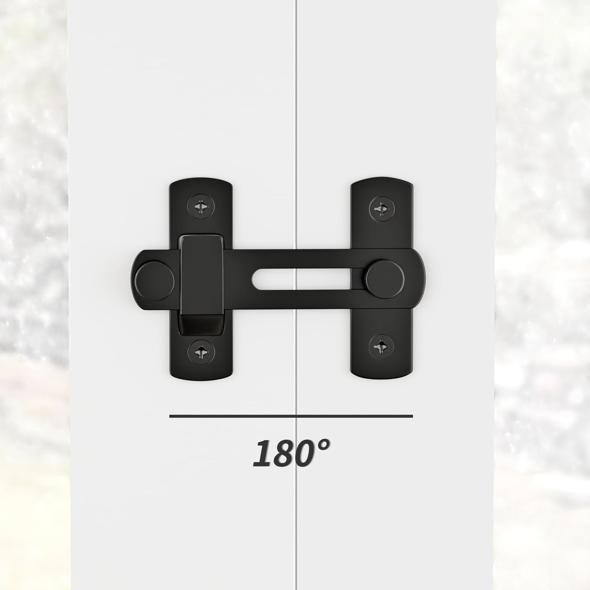SANKEYTEW 180 Degree Matte Black Bifold Latch Flip Sliding Barn Door Latches, Gate Latch for Barn Door, Sliding Door, Pet Door, Garage, Bathroom, Window, Outdoor