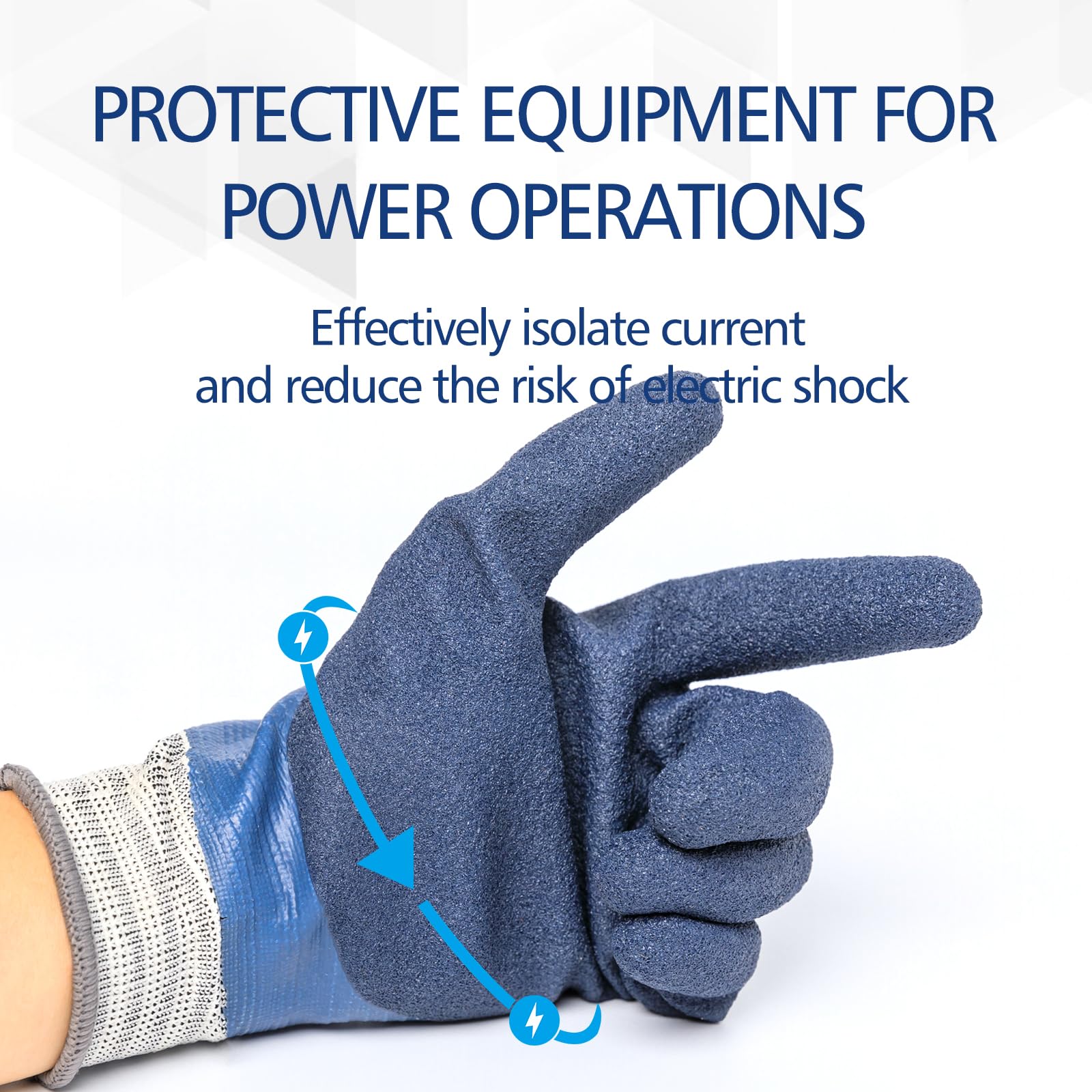 - HIGH-STRENGTH INSULATION PROTECTION:These insulating gloves can withstand voltages up to 1000V, providing a reliable current-isolating barrier during work, effectively blocking current conduction and significantly reducing the risk of accidental electric shock. Their stable insulation performance is maintained over time, providing reliable and all-weather protection for electrical workers operating high-voltage equipment and inspecting power lines.