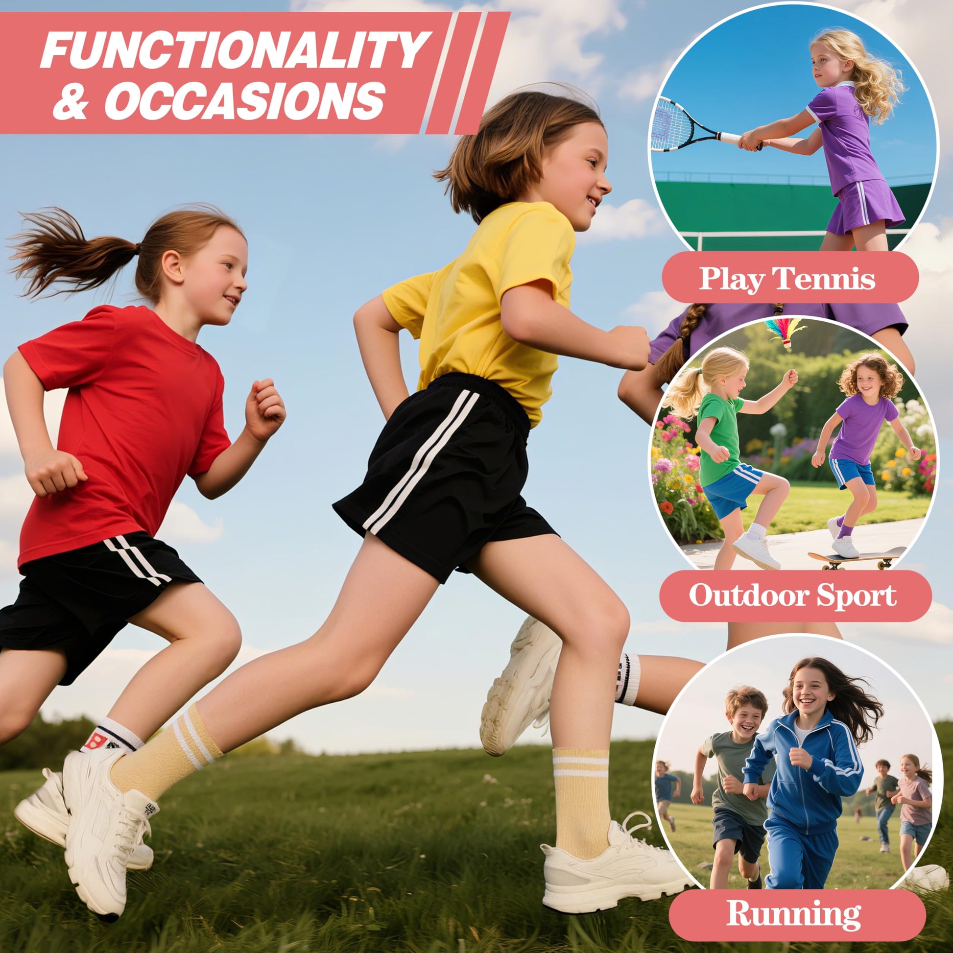- 【Package Included】6 pairs athletic basketball sports socks for kids girls. All colors are easy to match with kid’s outfits. Our kids' dress socks feature different colors are girls favorite!