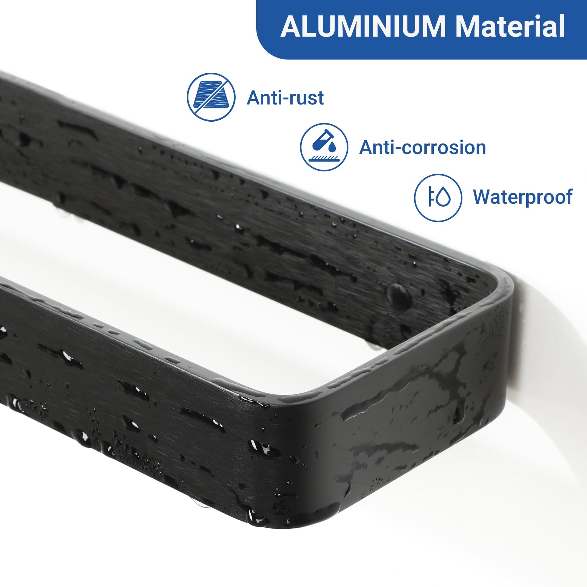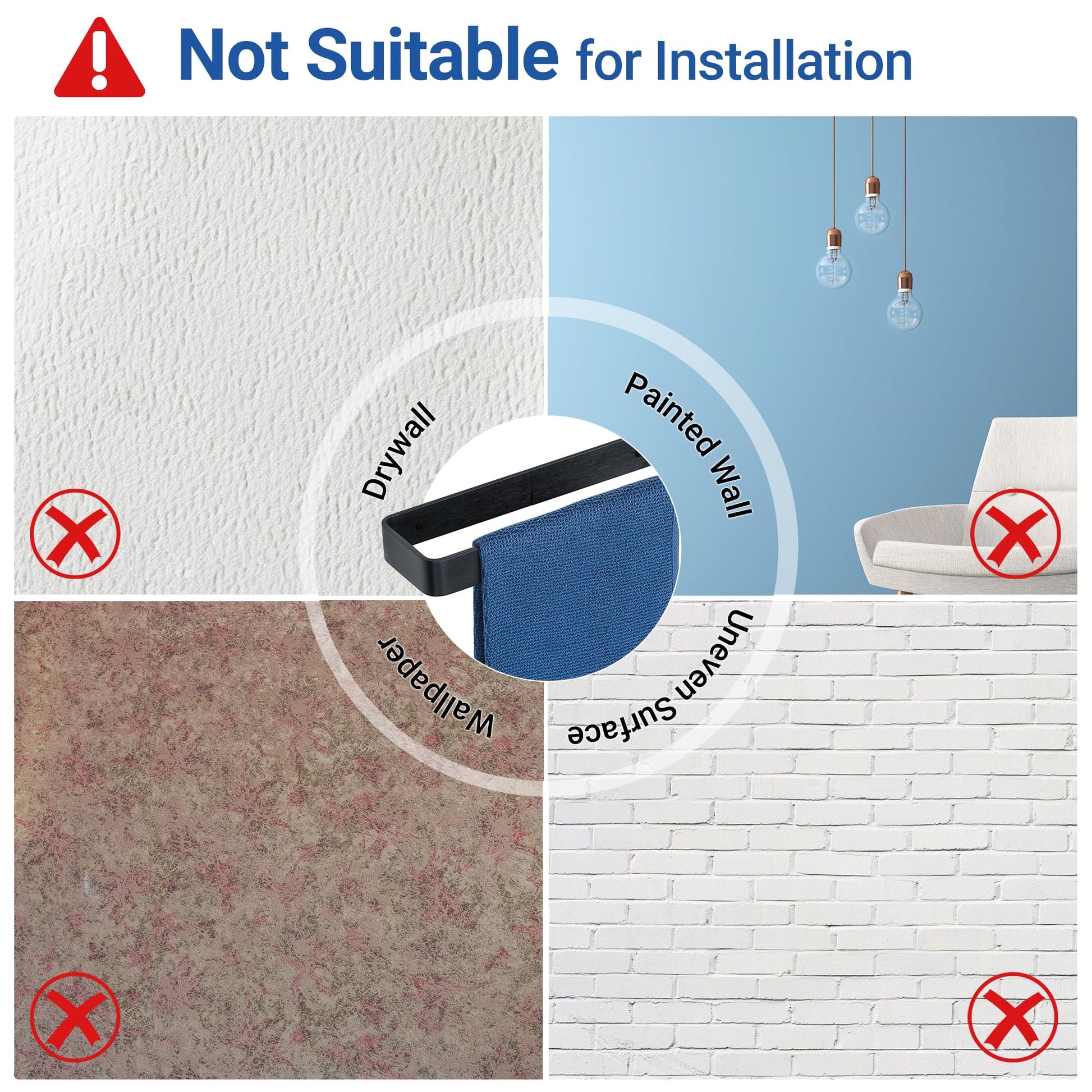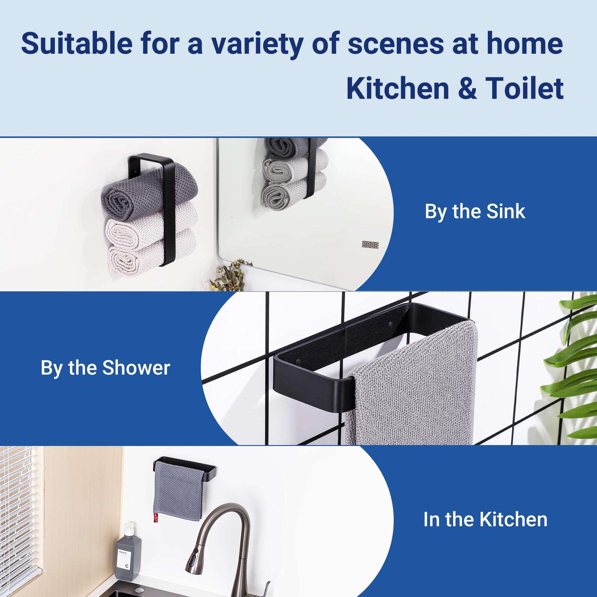 - DURABLE & RUSTPROOF MATERIAL: The stick on towel holder is made of 0.16 thickened premium aluminum for excellent strength and durability, not easy to deform. With a matte black finish, a durable material resists daily scratches and tarnish.