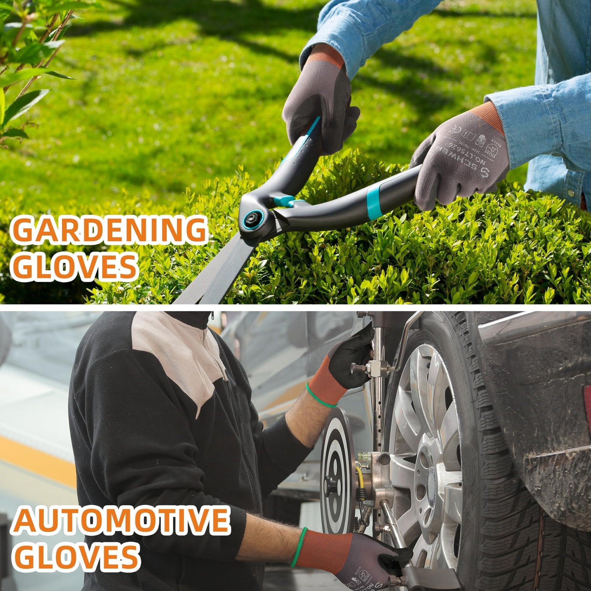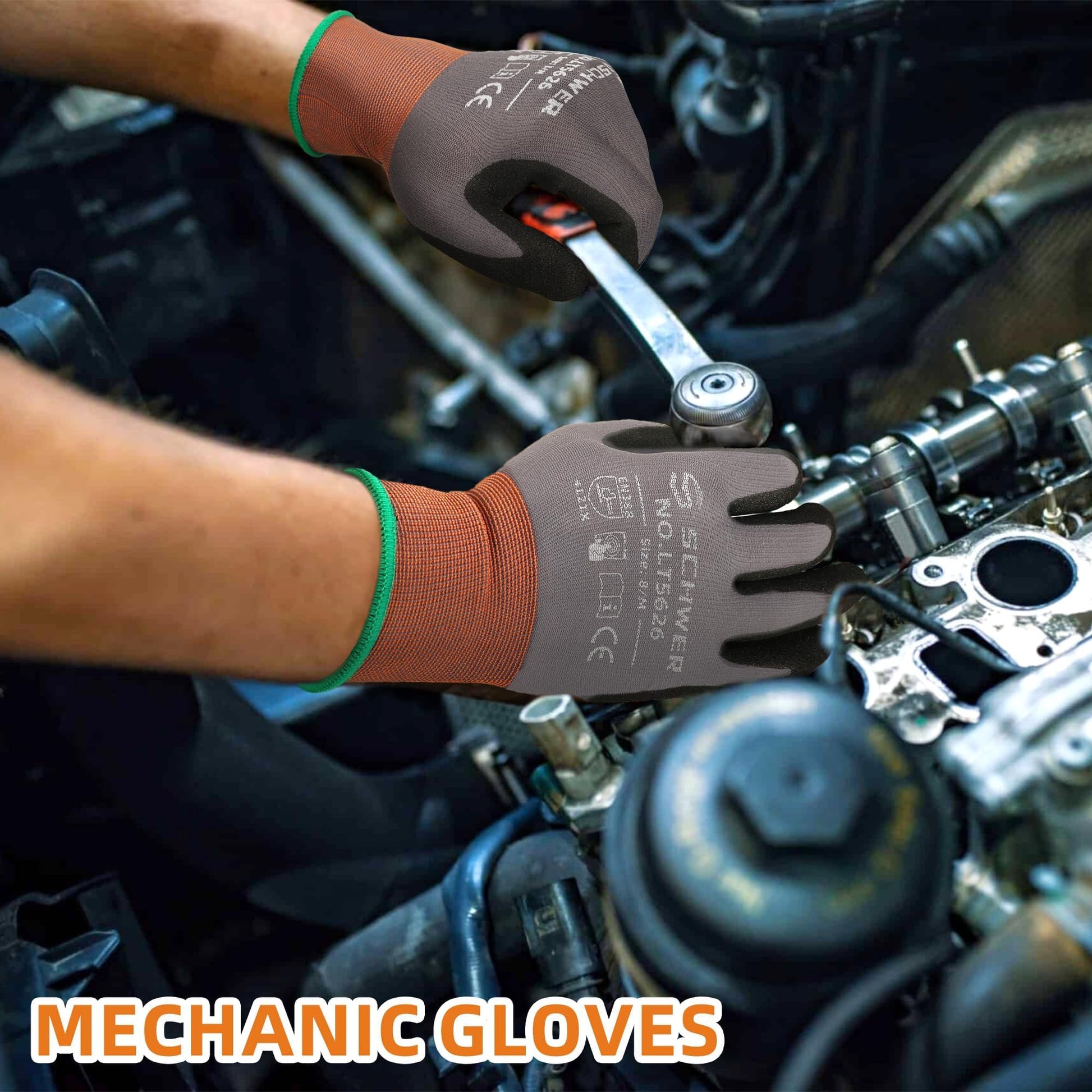 Schwer 6 Pairs Safety Work Gloves with Sandy Nitrile Coating LT5626, Max Abrasion Resistance Heavy Duty Gloves with Grip for Men and Women, Ideal for General Use, Mechanic, Construction, Gardening, L