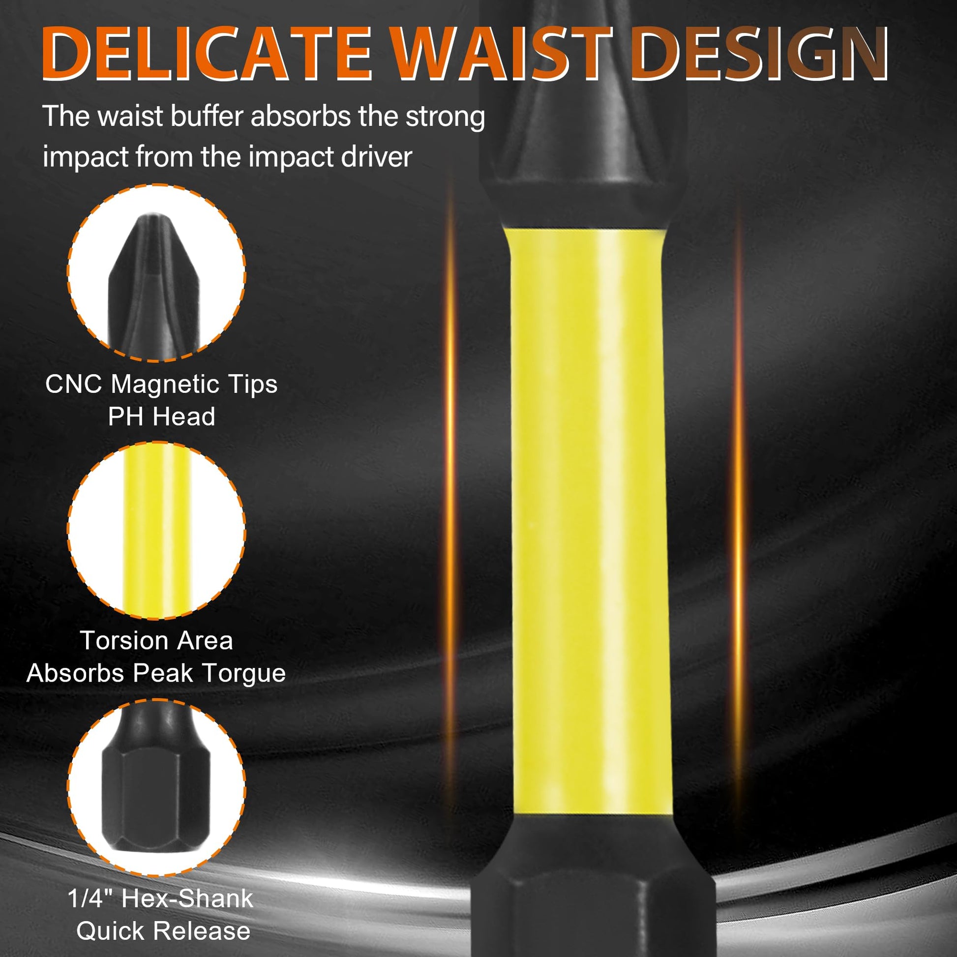 - 22-Piece Impact Screwdriver Bit Set: 10pc 1"(25mm) magnetic impact bit: PH1, PH2, PH2, PH3, SQ1, SQ2, SQ3, T20, T25, SL8; 10pc 50mm(2") magnetic impact bit: PH1, PH2, PH2, PH3, SQ1, SQ2, SQ3, T20, T20, T25; 1pc Adapter 1/4"×50mm; 1pc Impact Magnetic Bit Holder length 75mm