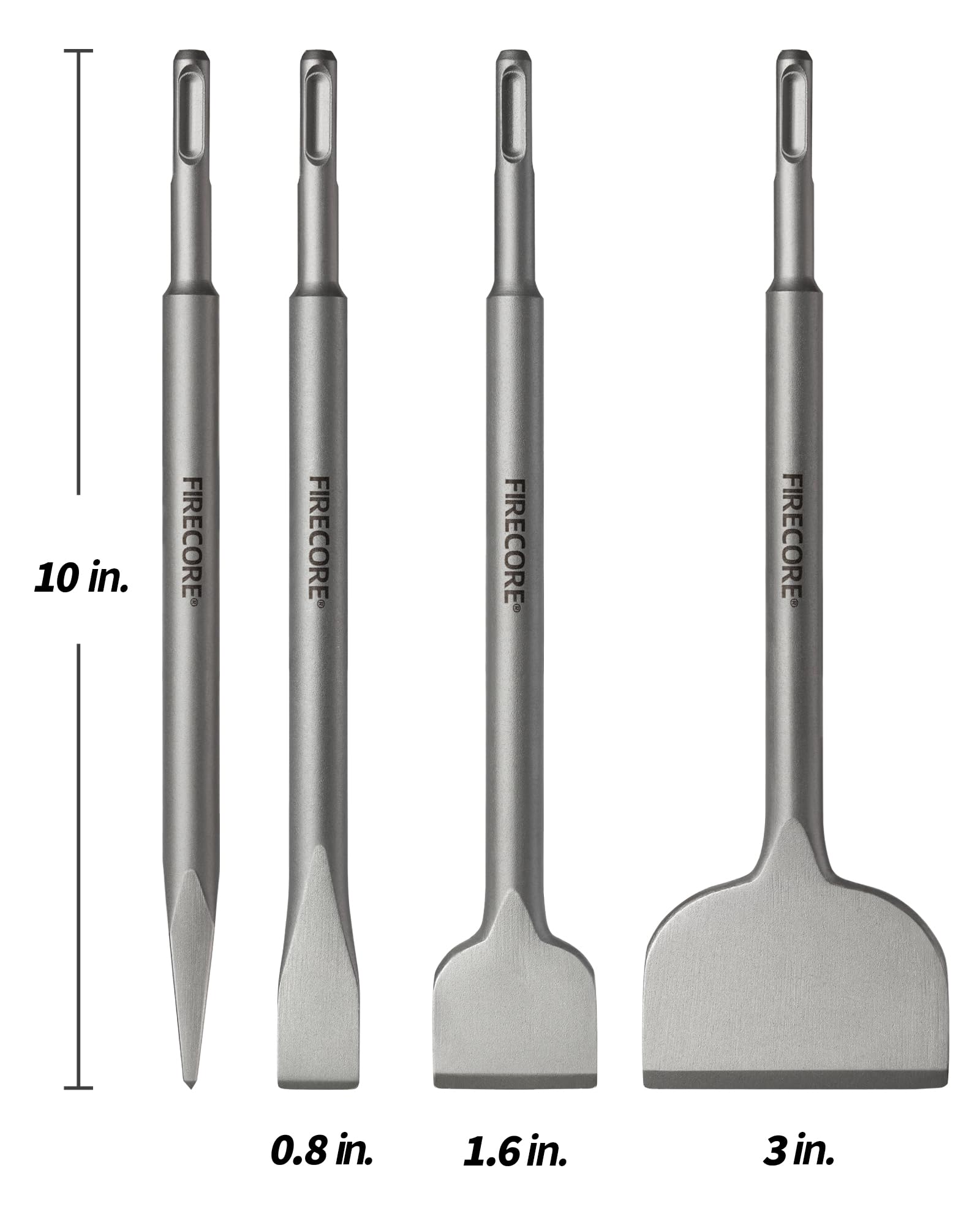 - Wide Application: Firecore SDS plus steel shovel kit is designed to remove old tiles, wall, deiling, laminates, thinset, rust, weld spatter, concrete splatter, mortar and other adhesives, as a great chisel tool for DIY enthusiasts and contractors.