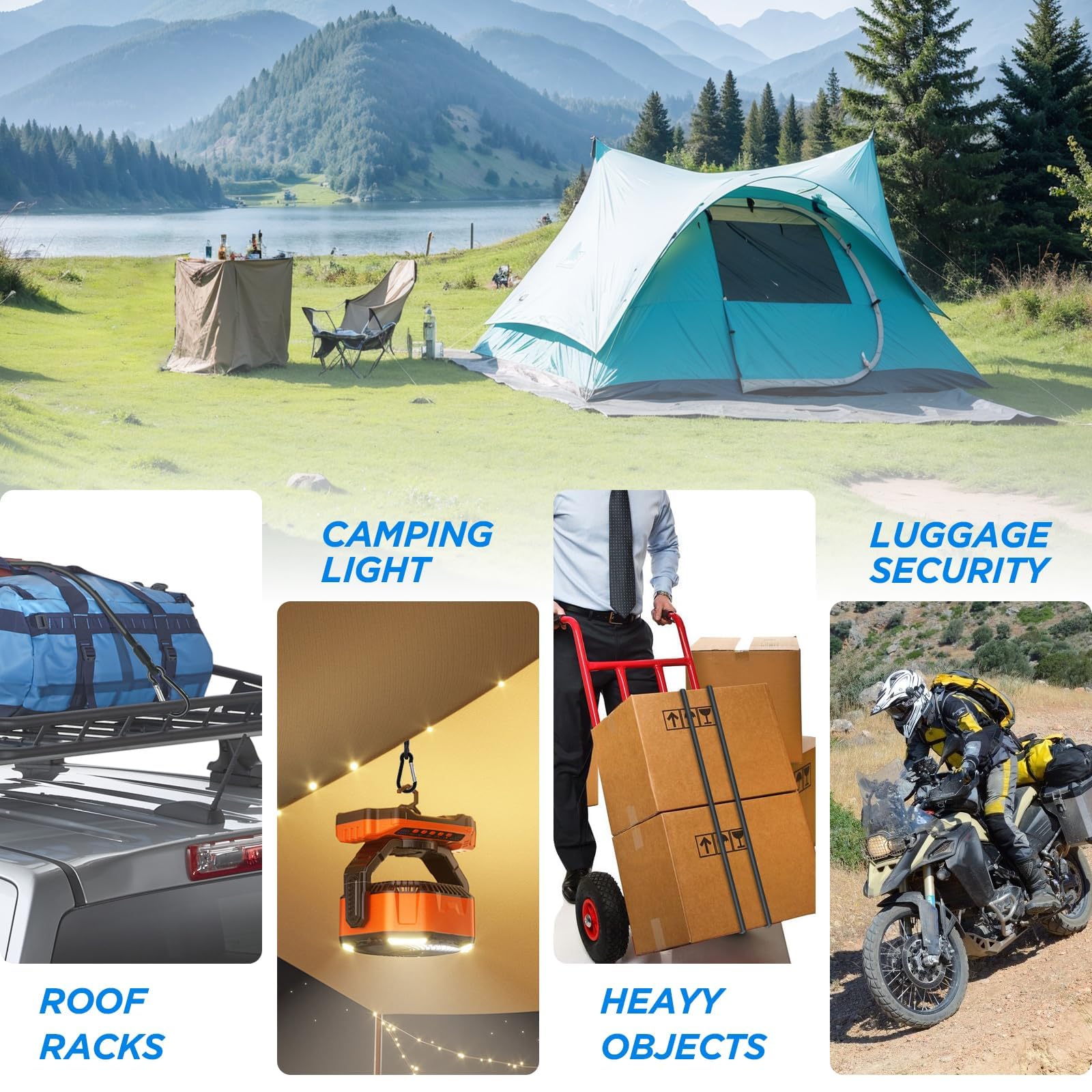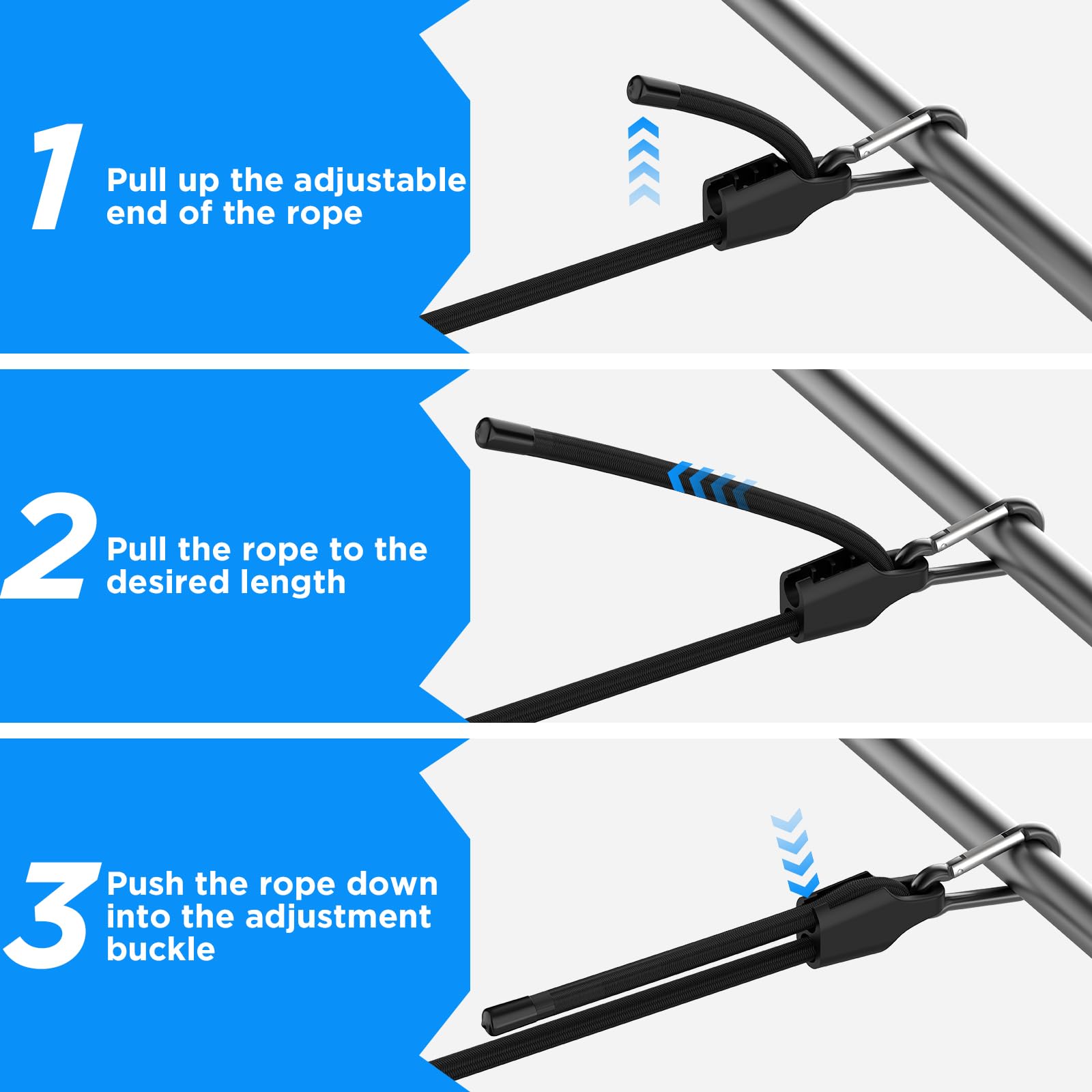 - 【Rust-Resistant Carabiner Hooks】The carabiner hooks of our adjustable carabiner bungee cords adopt electrophoretic coating technology, more durable and rust-resistant than common carabiner hooks, ensuring reliable performance in any environment
