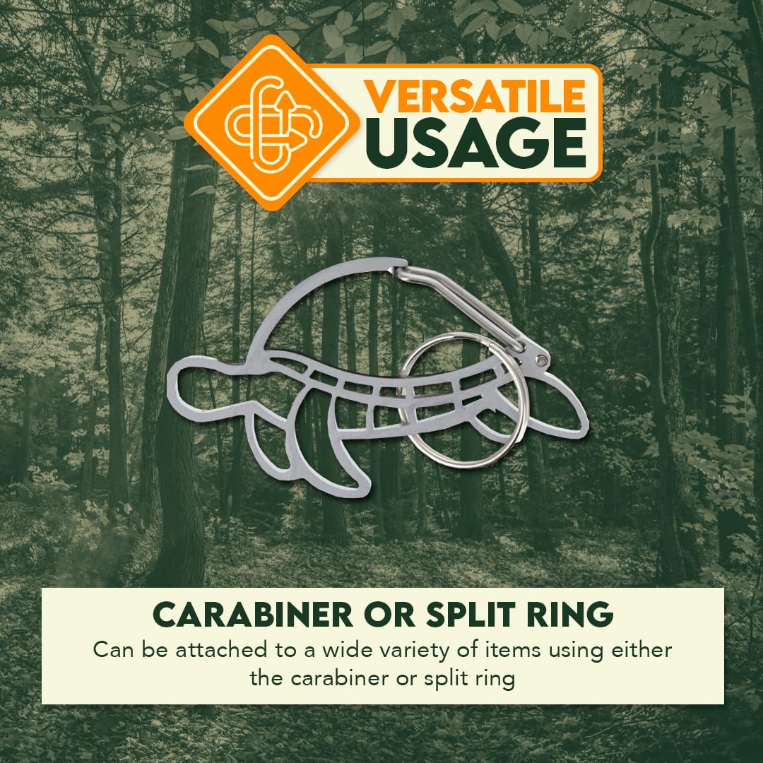 SE 2.5 Inch x 1.5 Inch Sea Turtle Shaped Heavy Stainless Steel Carabiner with Key Ring – Durable & Decorative Clip for Keys, Bags & Accessories – CK-SC70TS