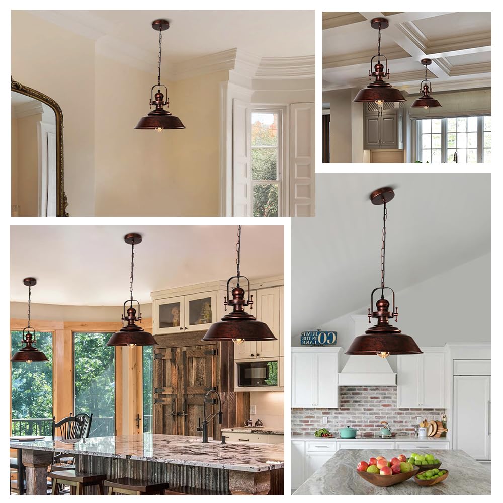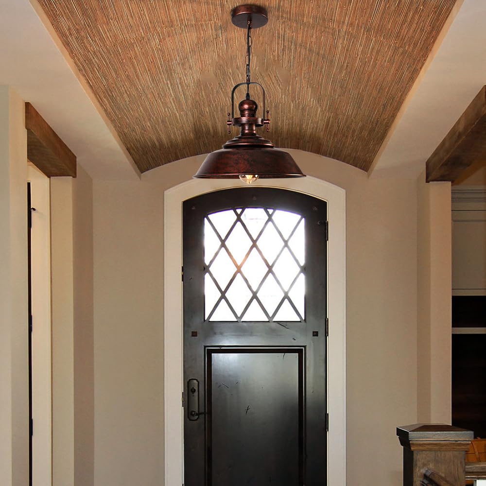 - [Adjustable Height] Featuring an adjustable chain, this rustic Barn Pendant Light can be customized to fit both flat and sloped ceilings, providing versatility for kitchen islands, dining areas, living rooms, and bedrooms.