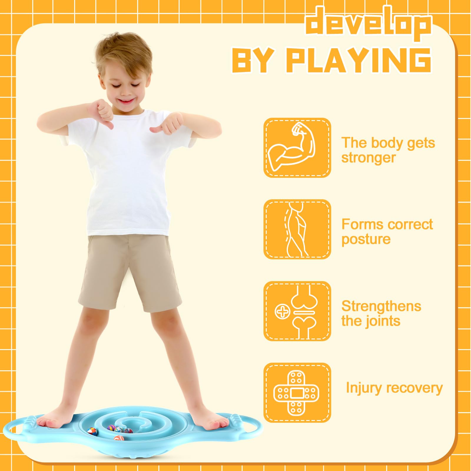 - Versatility in Fun and Exercise: our wobble balance board is a play accessory that doubles as an exercise tool; Ideally suitable for kids, it's designed to enhance the patience, balance, coordination, muscle strength, and core stability; Equipped with 5 balls, this balance board allows kids make the balls reach the center through the notched path; Just slip it into your daily routine for a fun filled exercise experience