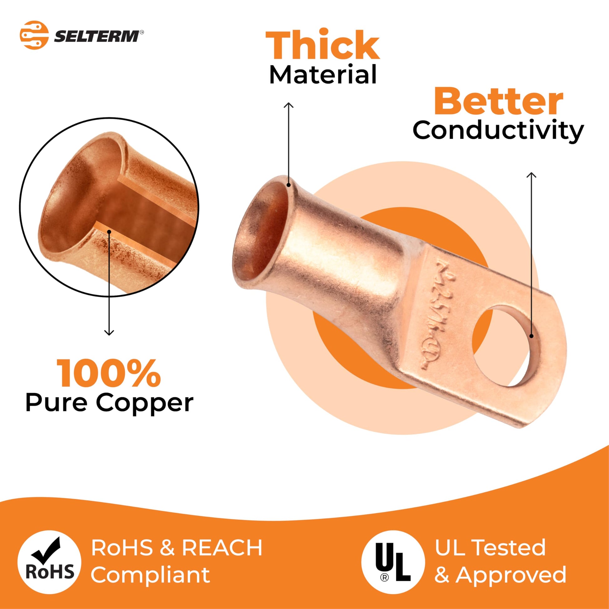 - Easy Installation: Installing the Selterm copper terminal connectors is straightforward. Insert the cable into the lug, crimp securely, and then use the included heat shrink tubing to seal the connection. This user-friendly process ensures a hassle-free setup.