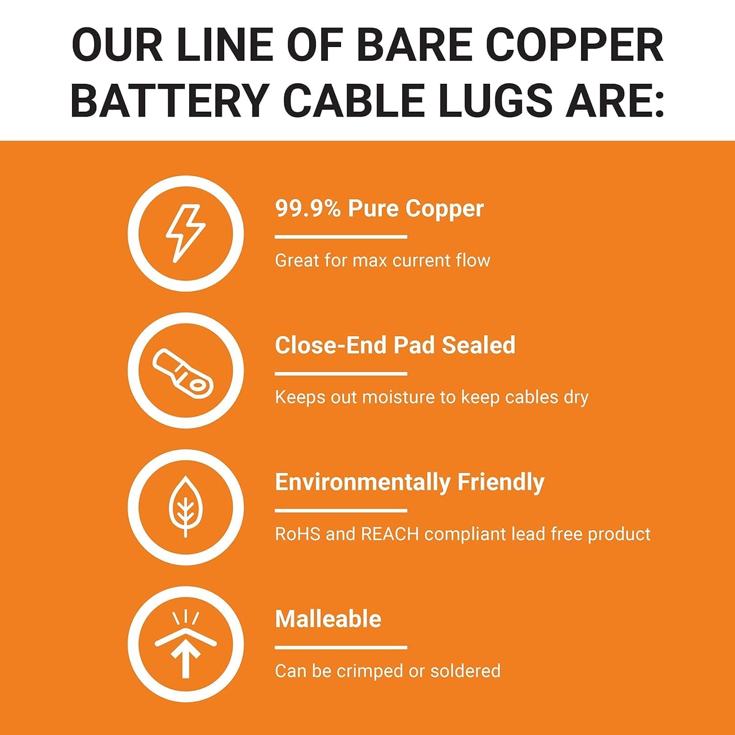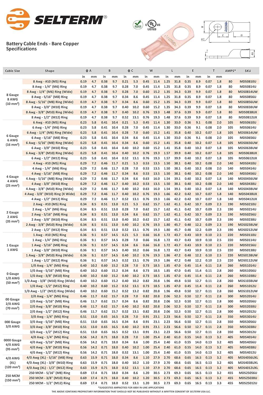- Secure and Reliable Connections: Ensure strong and dependable battery connections with Selterm 2 AWG battery cable ring terminal connectors. These lugs are designed to provide a solid link between battery cables and terminals, preventing power loss and voltage drops.