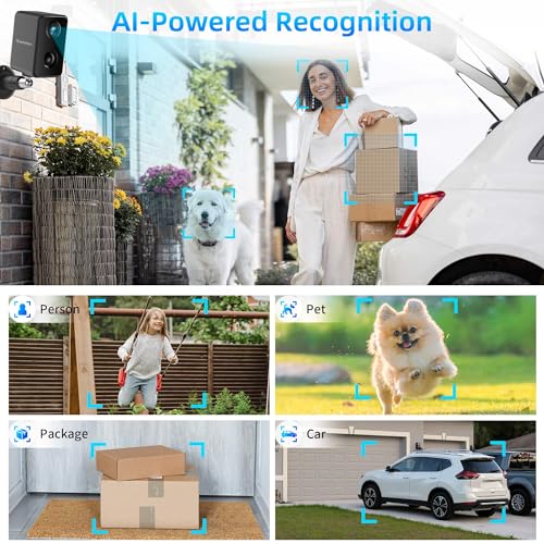 - ¡¼AI Powered & PIR Motion Sensor with Siren¡½The wireless security camera supports AI & PIR detection with siren that can recognize people, pets, packages or cars, which ensures accurate detection and fewer false alarms. Stay informed and react promptly to potential security threats, enhancing the overall safety of your surroundings.
