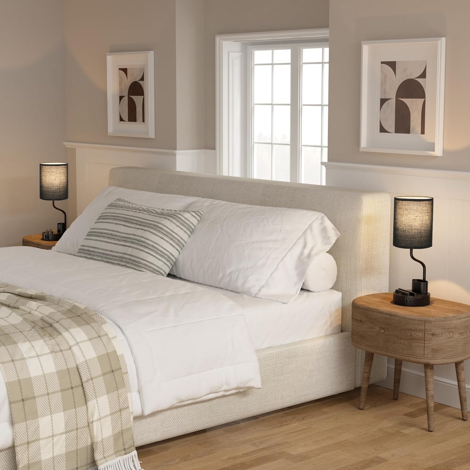 - 4. Plug and Play Modern Bedroom Lamps Set: With a sleek black base and a chic beige shade, this night stand lamp complements any decor. Its modern stylish design is perfect for both home and office settings, blending effortlessly with various styles and color schemes. An ideal tableside lamp for bedroom, guest room, living room, study room, kids room, college dorm room for girls and boys, office room, desk, etc