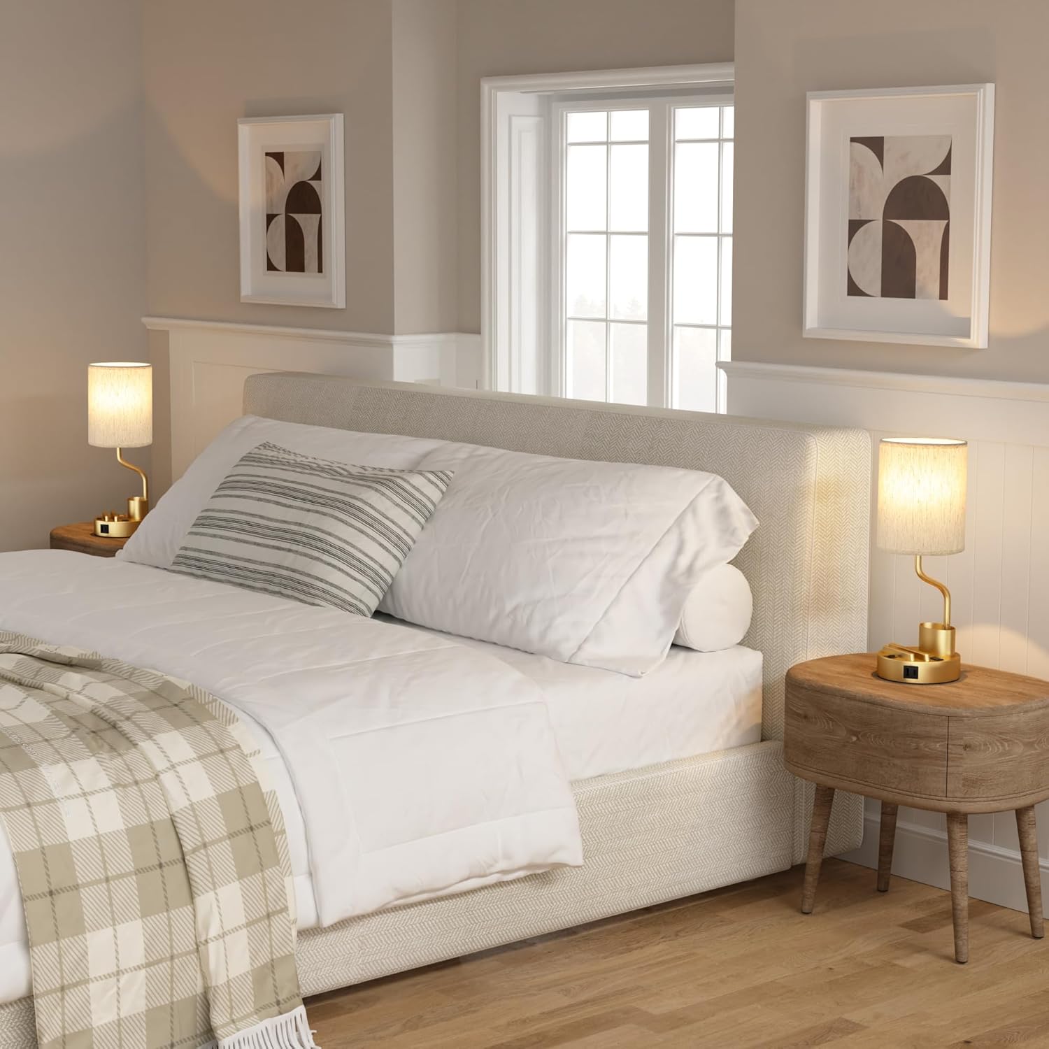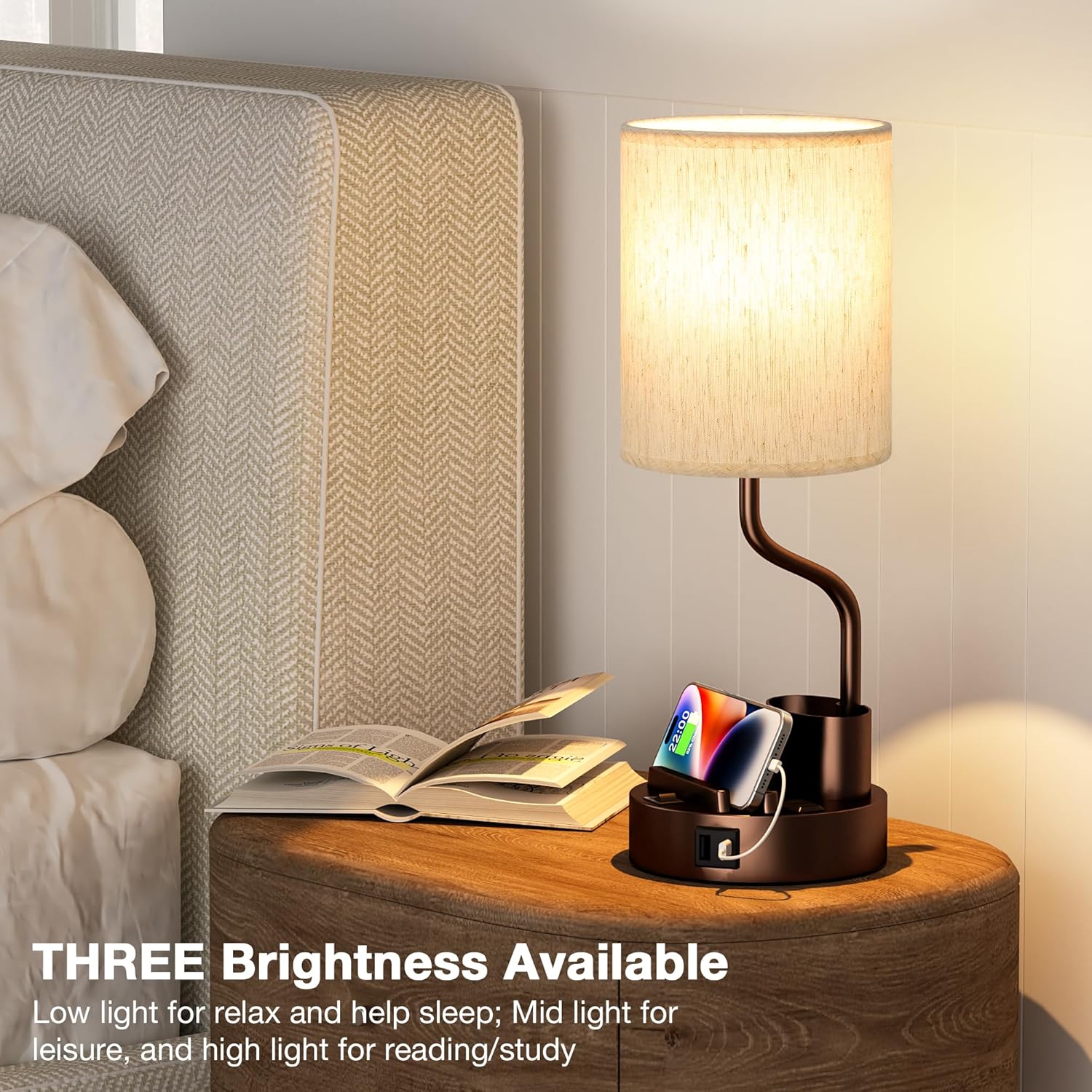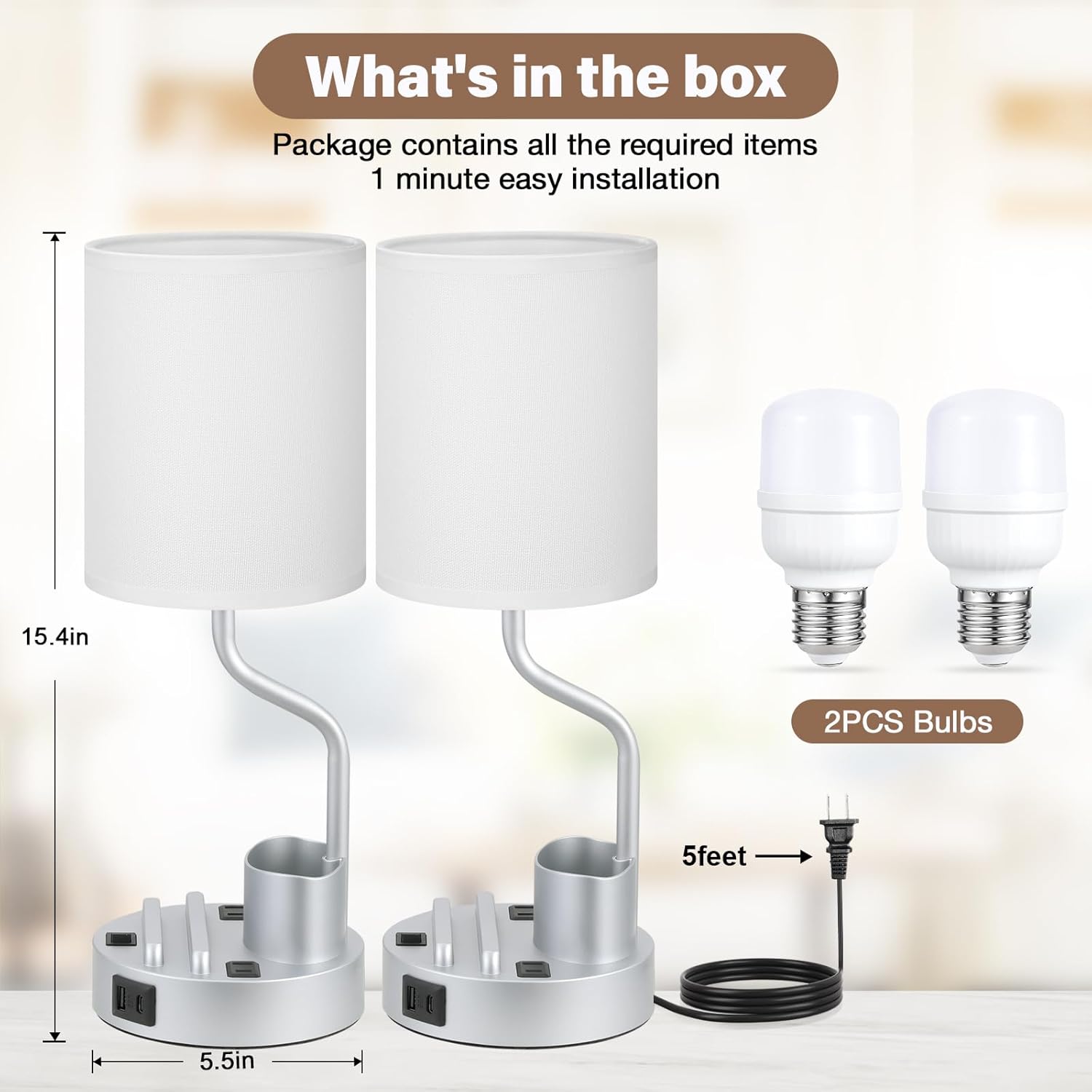 Set of 2 Bedside Table Lamps with USB & AC Outlet - 3 Color Temperatures, Desk Light & Phone Stand for Bedroom, Living Room, Office