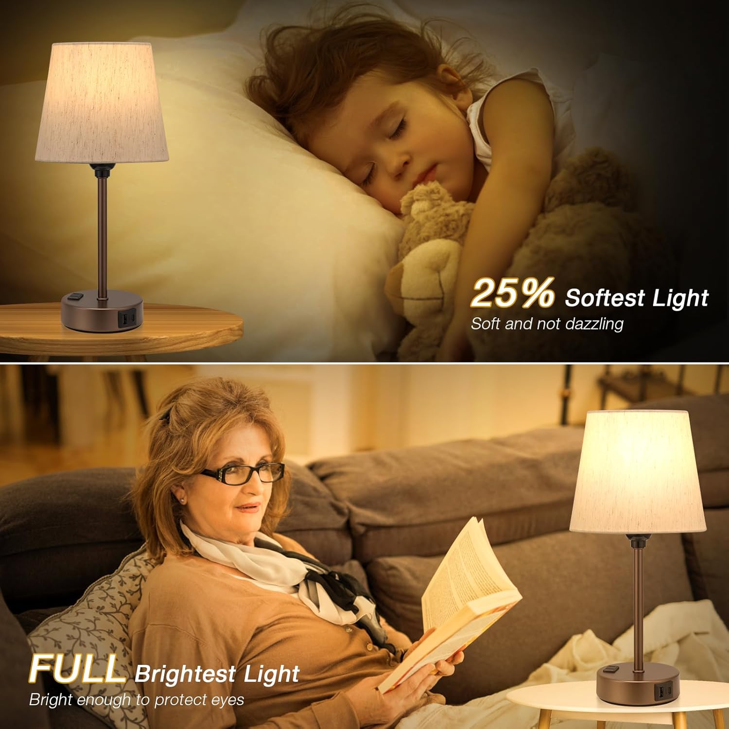 - 💡💡 Two FREE Bulbs Included: You will receive 2pcs E26 LED bulbs (worth 20USD) for free. It helps save your time and money on buying two extra bulbs for the bedroom nightstand lamps set of 2. The free bulbs is 2700k comfortable brightness with no flicker, no buzzings and no mercury. 6 watt full size is bright enough for your living room/bedroom/kid's room/older's room.