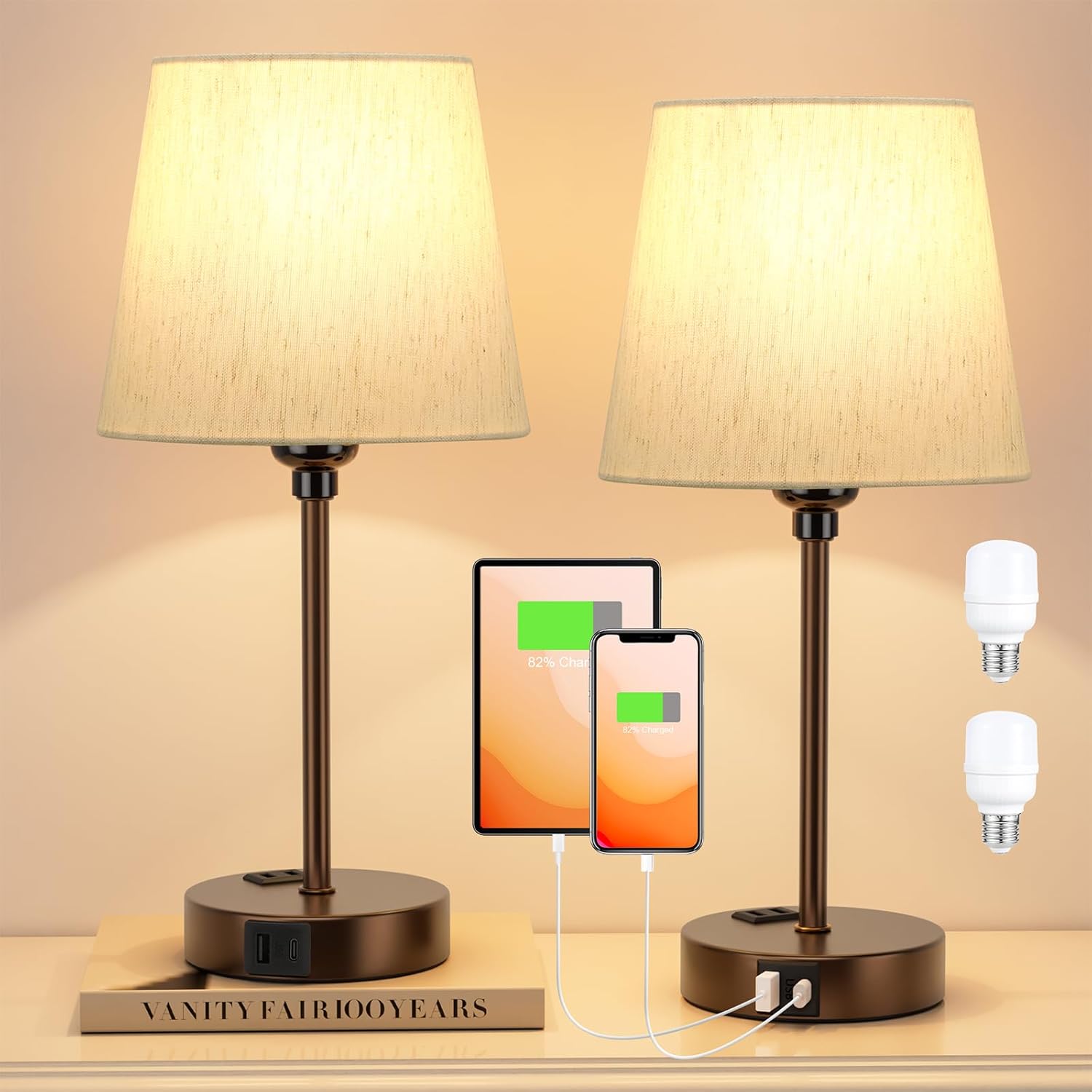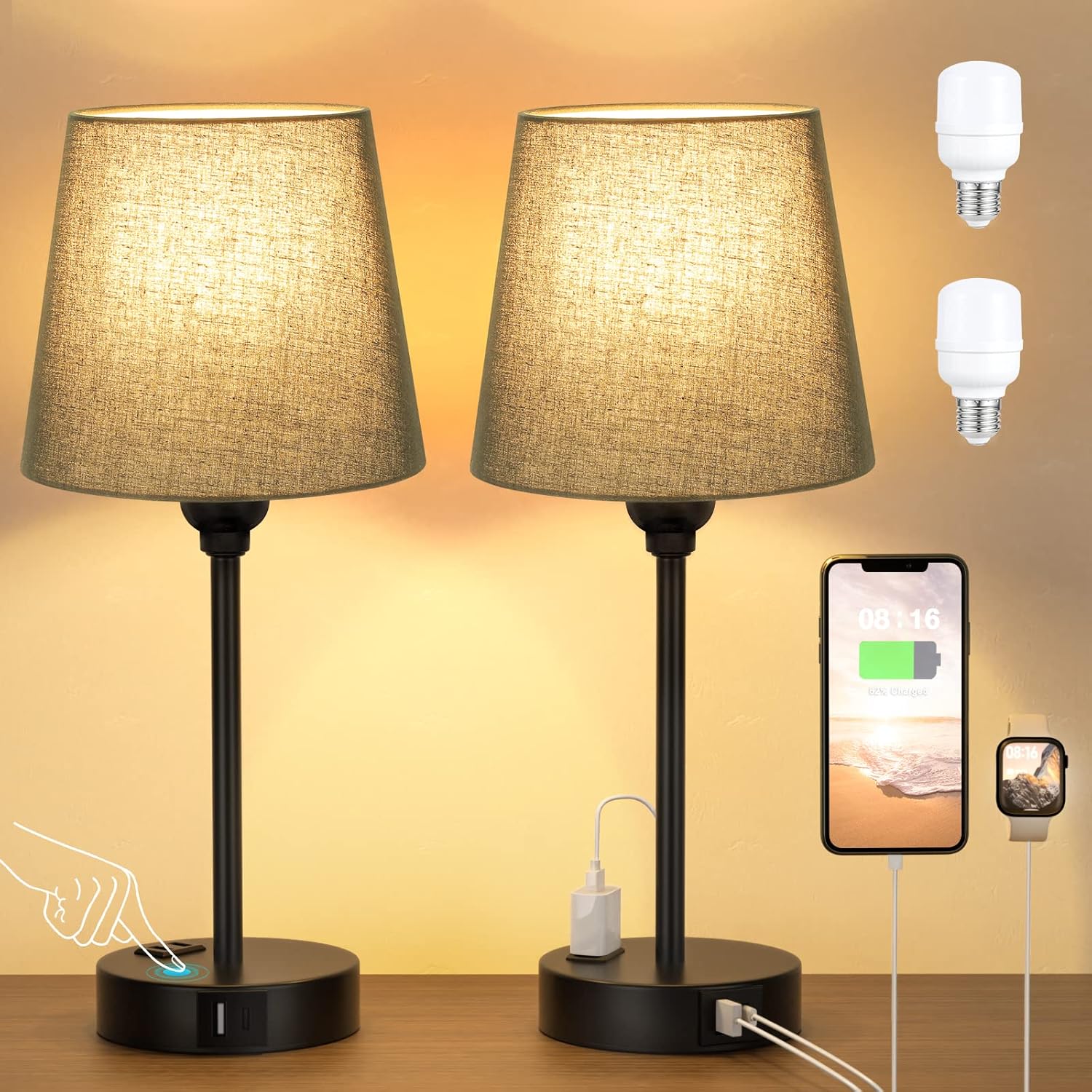 Acaxin Bedroom Lamp for Nightstand Set of 2