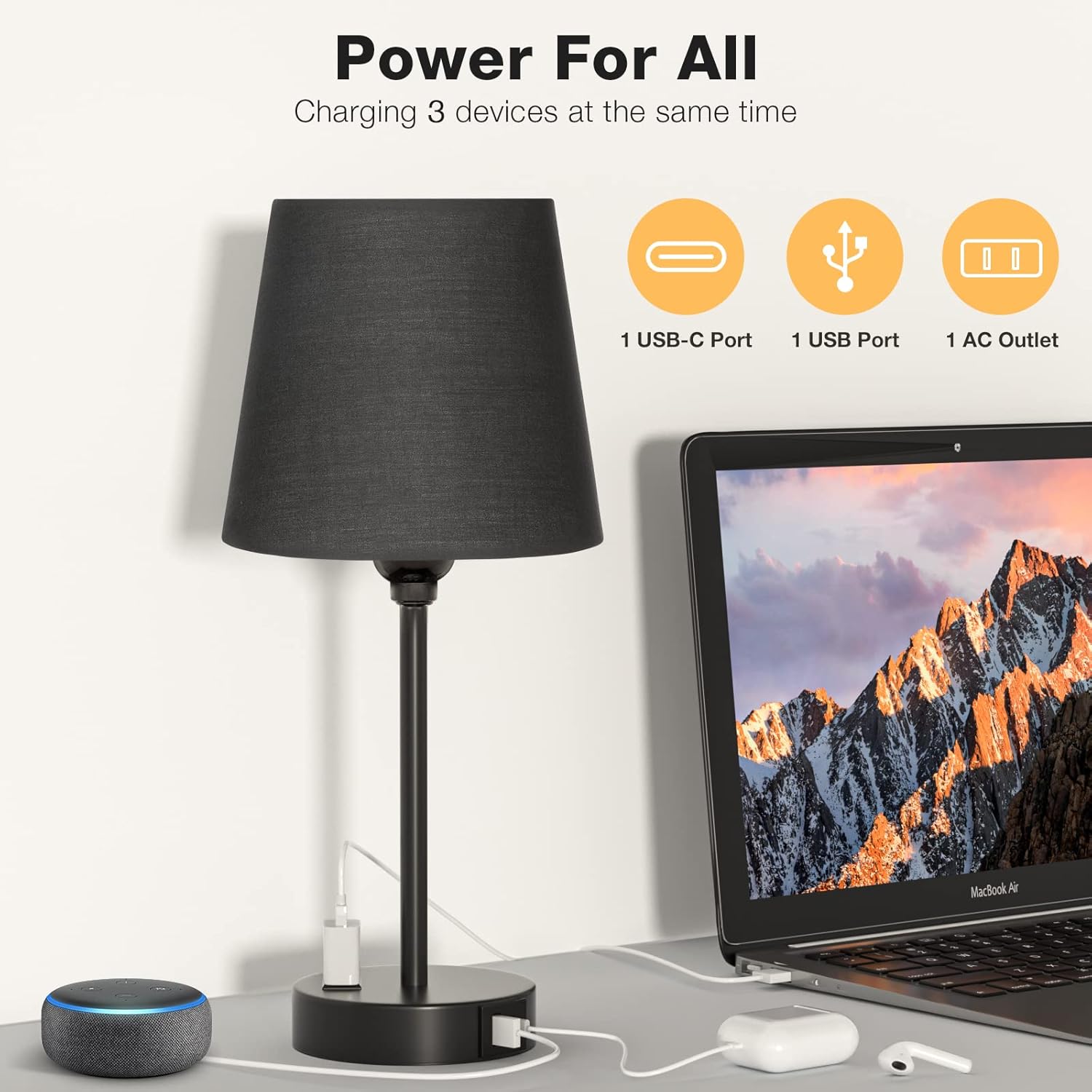 - 💡💡 Upgrade 3 IN 1 Fast Charging - Package included two of bedside lamps come with build in USB/USB-C/AC outlet charging ports, for allowing you to charge 6 devices at the same time, such as Phones, Ipad, Airpod, and other electric devices. The charging station will work whether the bed lamp is on or off, which provides more convenience to your life.