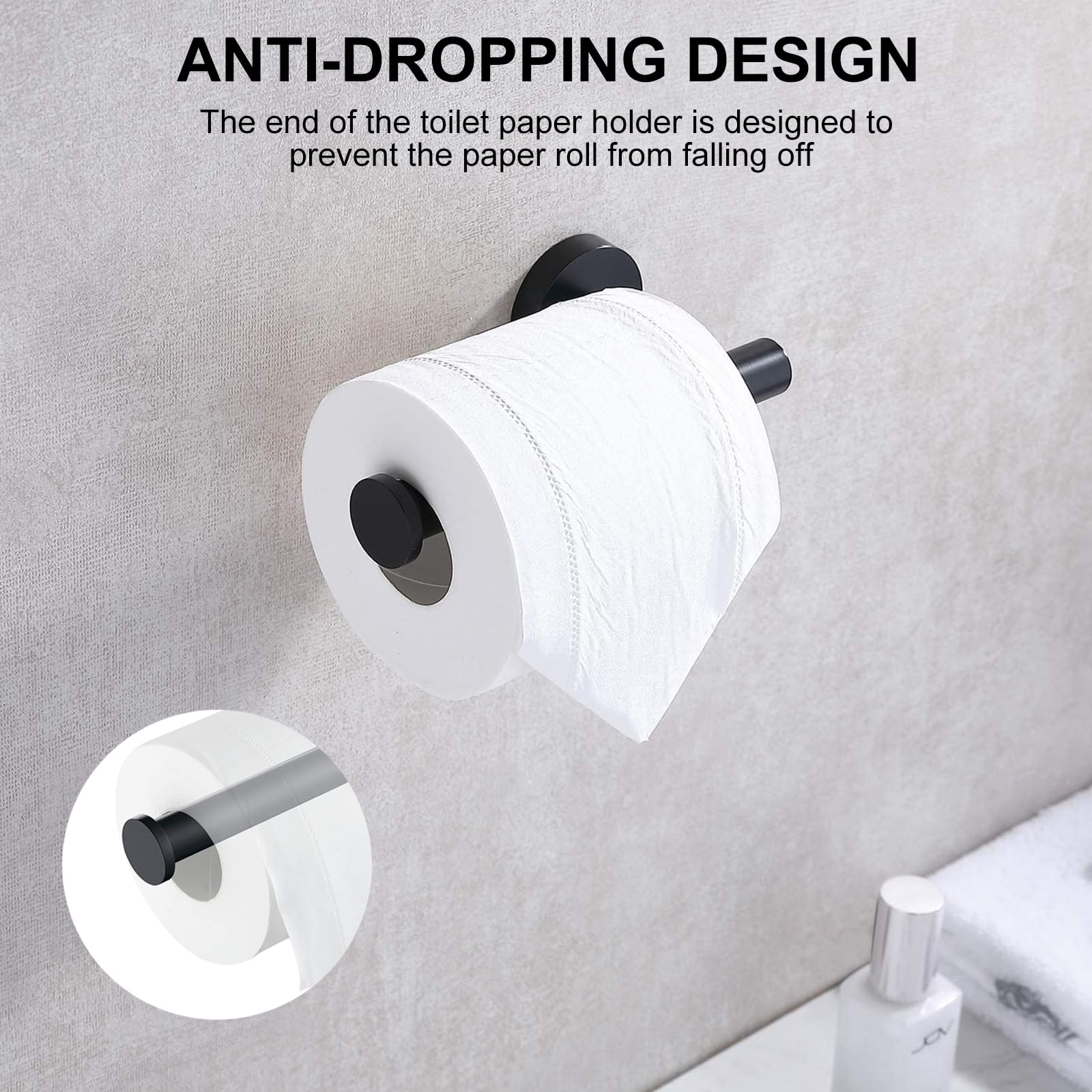 - DROP PROOF DESIGN - There are screws tightening on the bracket to prevent rotation and wobble, and the end of the toilet paper holder is designed to prevent the paper roll from falling off. No need to worry about the toilet rolls falling on the floor.