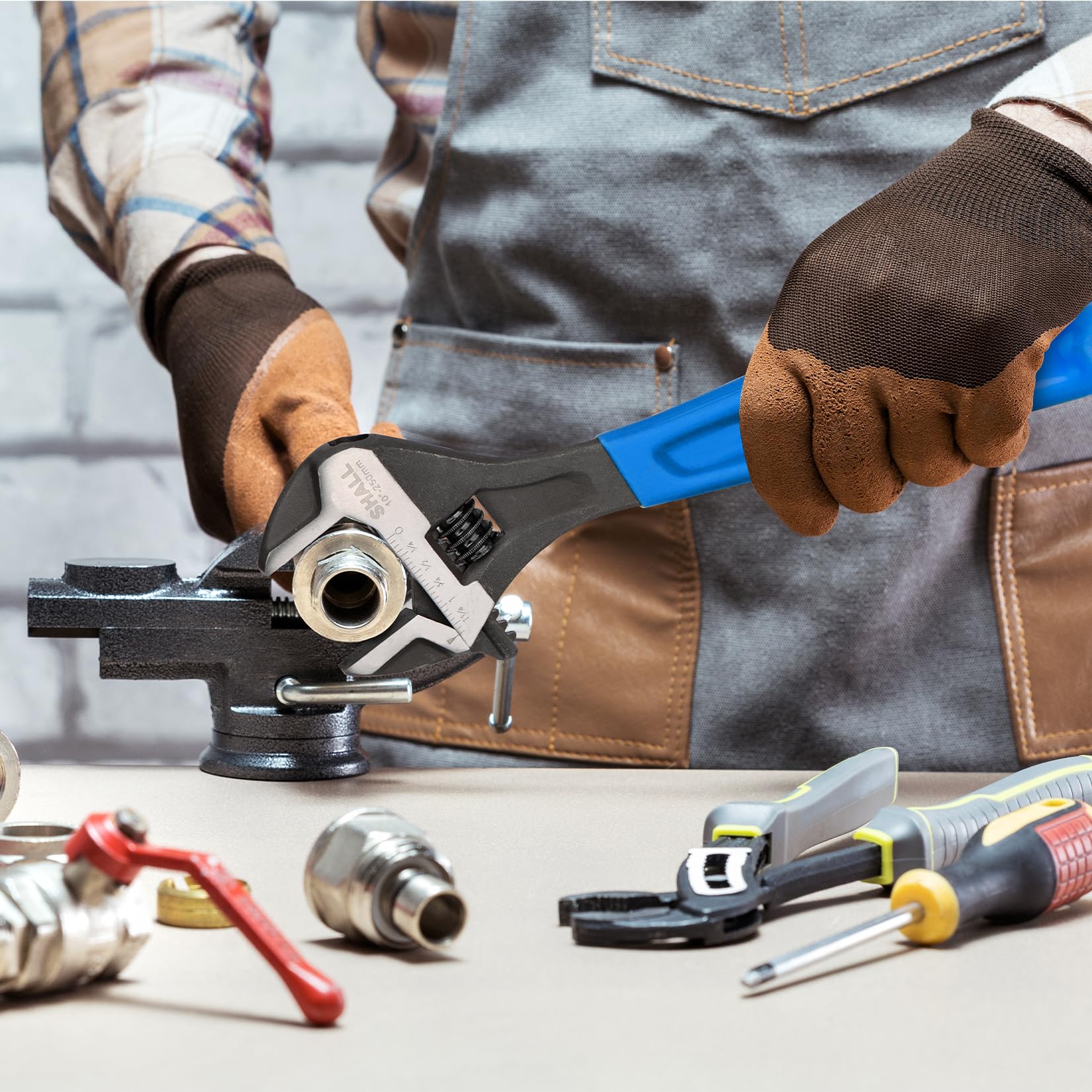 - Flexible Worm Gear: With its non-slip knurled design, the smooth adjustment worm gear of the wrench quickly adjusts the jaw without jamming and hand injury; More precise slots with smaller gap ensure stays on the exact scale after adjustment