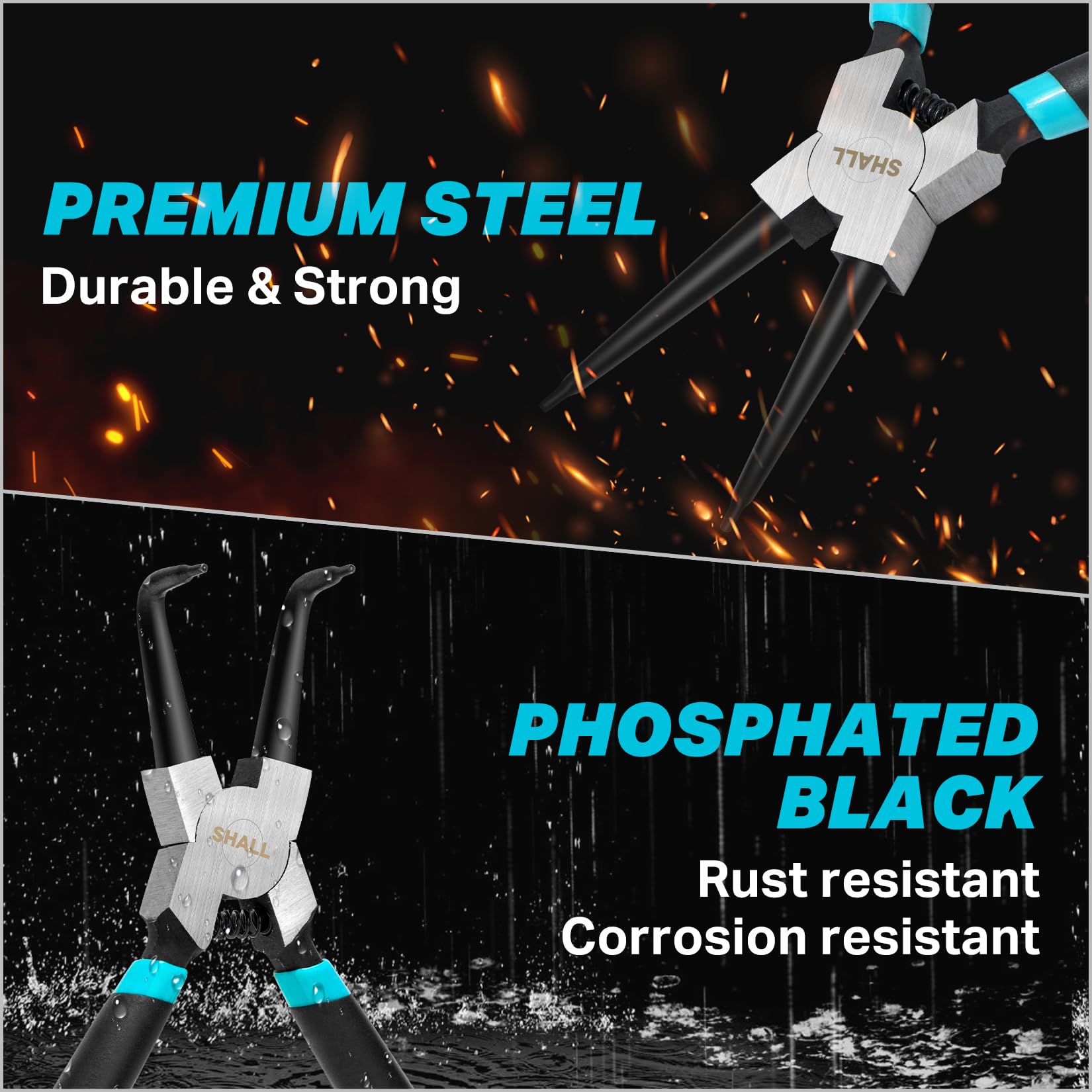 - Robust Build Quality: All c-clip pliers are made of high-quality steel, which features high hardness & durability; The tips are coated with phosphating black coating to prevent rust and long lasting