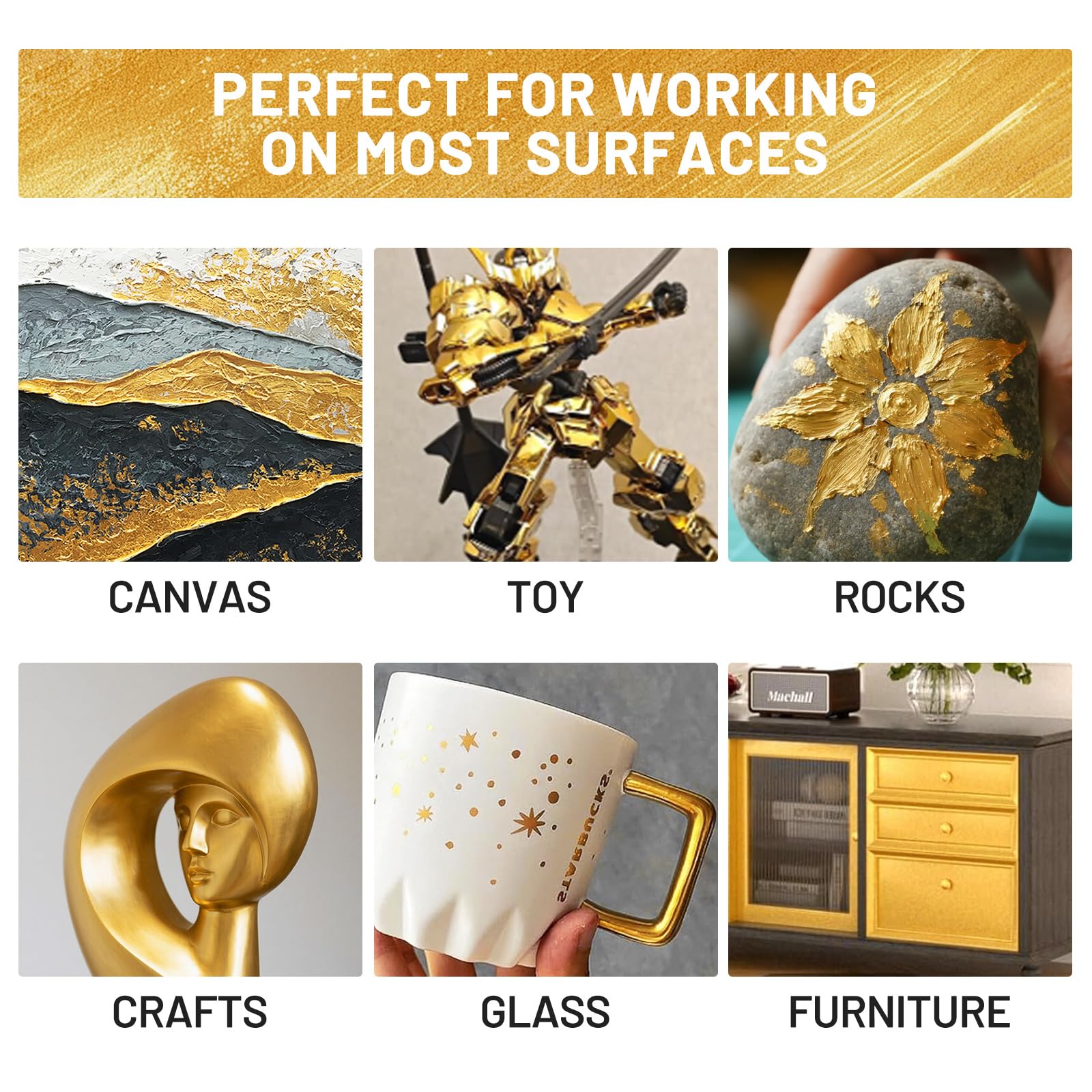 ShangTianFeng Gold paint high-gloss multi-surface rich gold paint is suitable for metal, wood, cast iron, plastic, canvas, electrical appliances, acrylic, enamel, furniture scratch repair and artistic handicrafts. Artistic gold foil 30ml/1.5oz quick-dryin