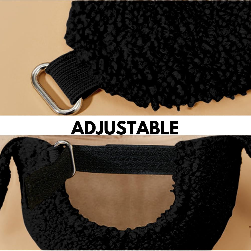 Sherpa Fleece Baseball Cap with Earflaps, Warm Fuzzy Winter Hat Adjustable for Men and Women Outdoor Travel (US, Alpha, One Size, Black)