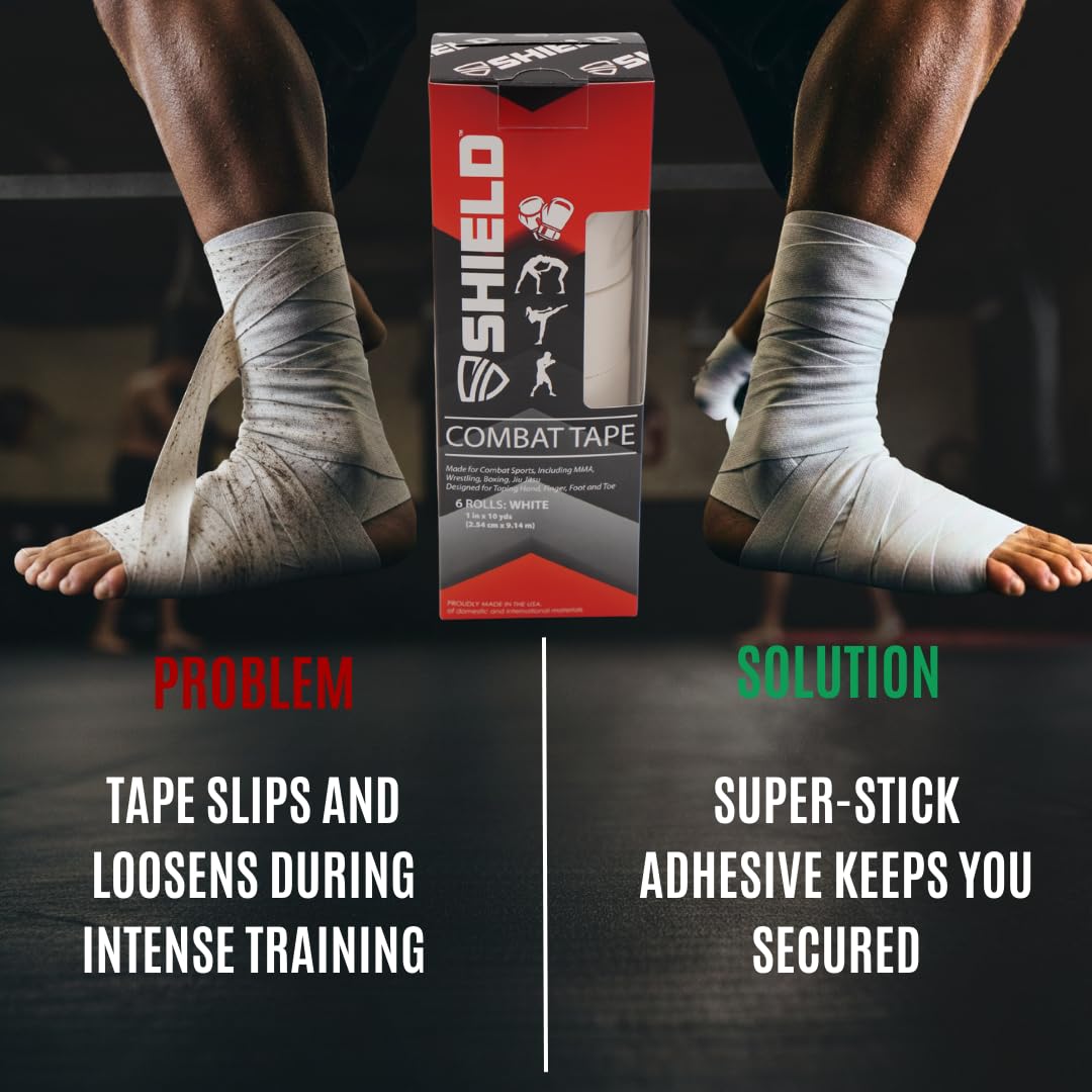 SHIELD Combat Tape | Boxing Tape for Hands, USA Made, Athletic Tape 1 inch, Easy-Tear, 1" Inch x 10 Yards, 6 Pack, Boxing MMA, Muay Thai, White