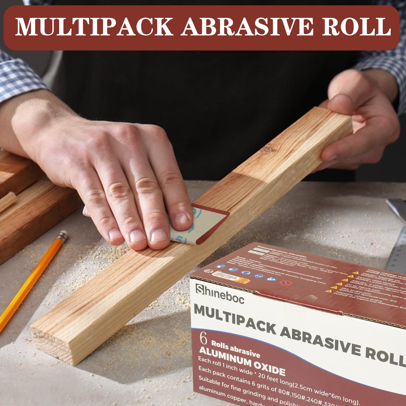Shineboc Emery Cloth Roll, 1" x 20 Feet Continuous Sandpaper Roll, 80/150/240/320/400/600 Grit Sand Paper Assortment Pack for Wood Metal Sanding and Polishing