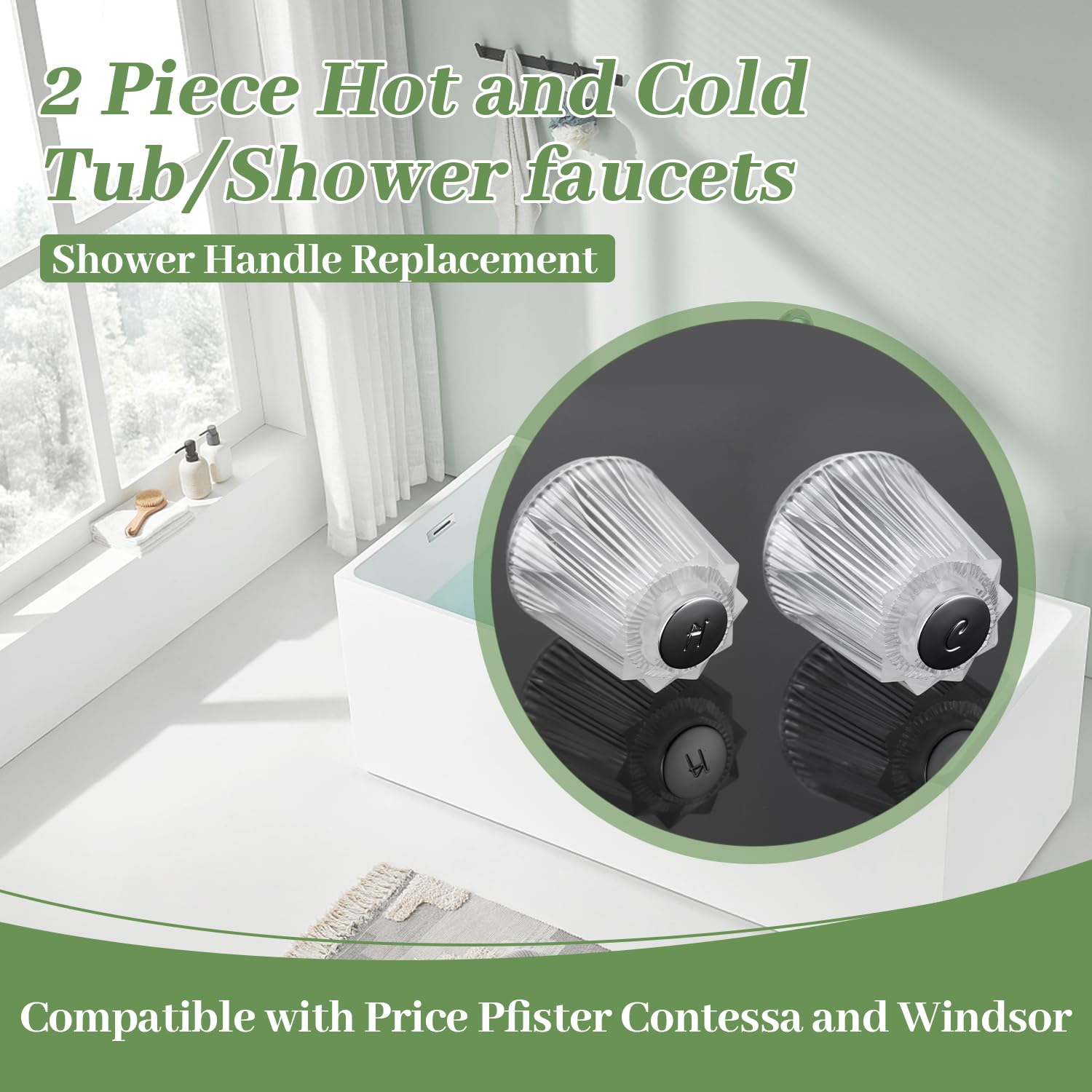 Shower Knob Replacement Compatible with Price Pfister Contessa & Windsor Tub and Shower Faucet Shower Knobs, Shower Knobs 2 Piece Replacement for Pfister Shower Handle Replacement (Clear Acrylic)