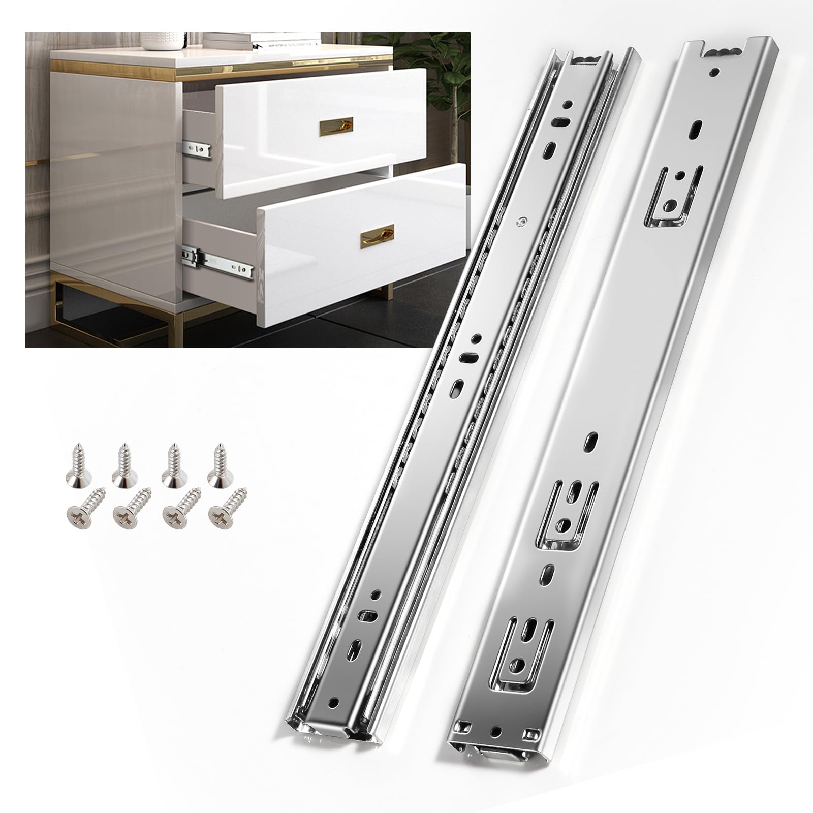 - 【Full Extension & Ball Bearing Design】— 3-setions fold is convenient to fully open the drawer for easy access.Ball bearing drawer slides design ensure drawer slides smoothly and silently.