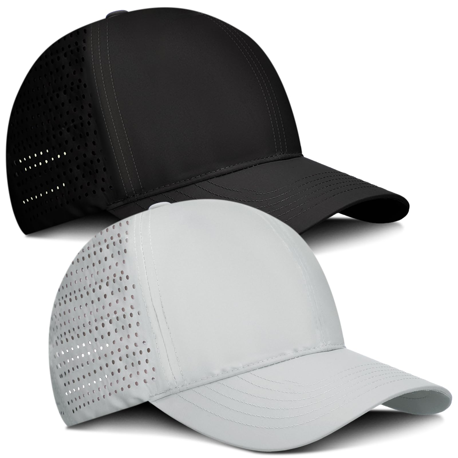 Shyyween 2 Pack Oversize XXL Baseball Cap, Breathable Mesh Quick Dry UPF50+ Cooling Touch Sweatband Running Big Head Golf Cap Black, Gray