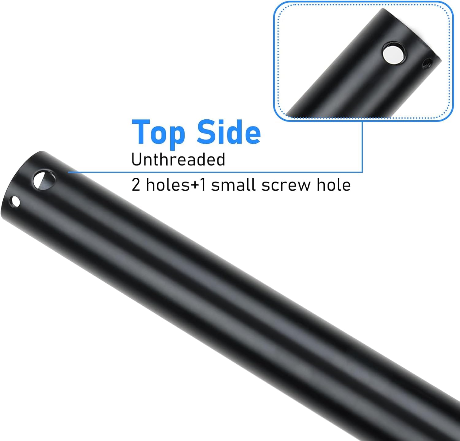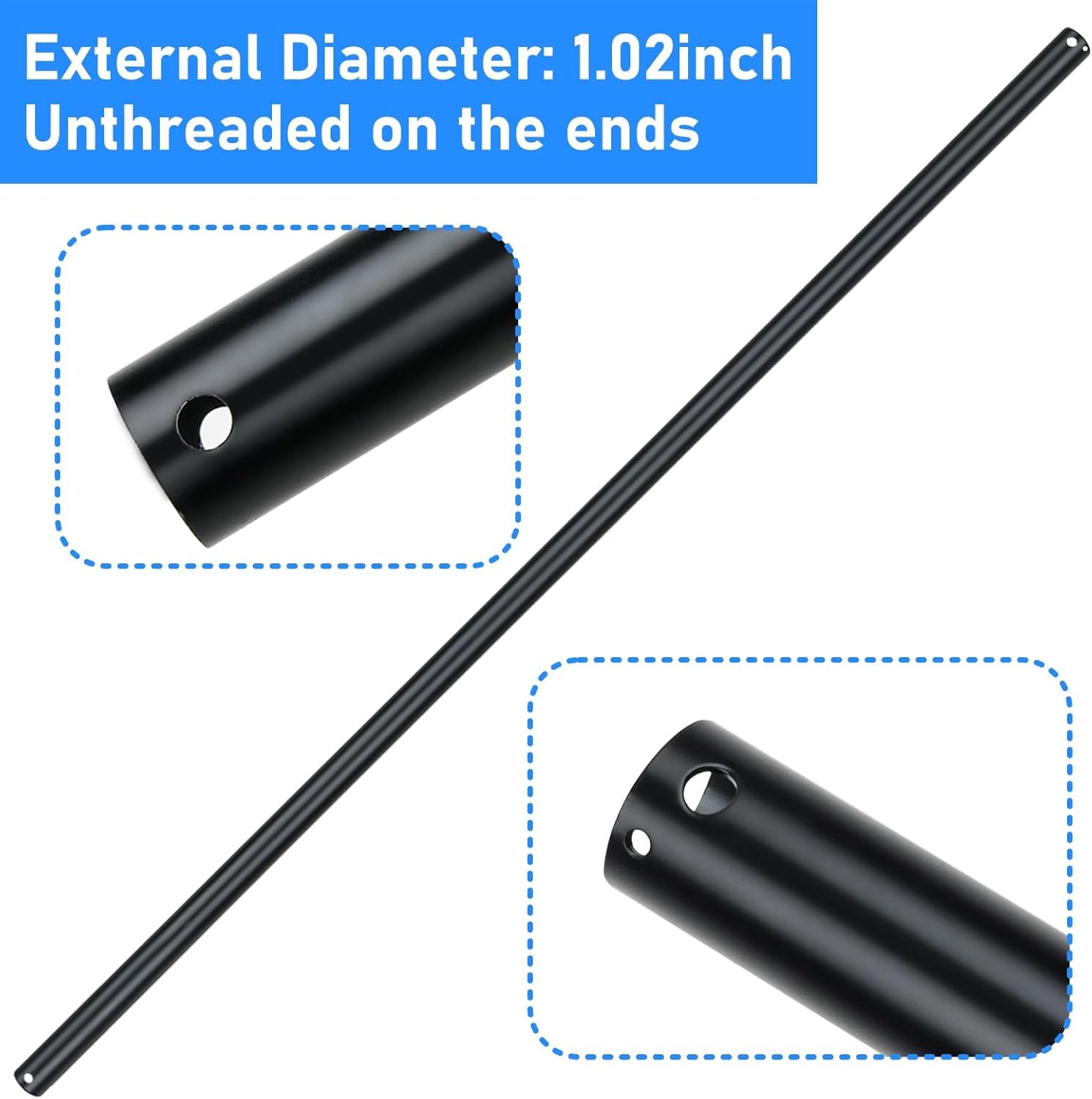 - Universal Compatibility — The ceiling fan downrod has an outer diameter of 1inches and comes pre-drilled with holes for the locking pin. Weighing around 1700 grams, The extension rod fits most ceiling fans. Note: Our 6FT black downrods are not threaded. Please make sure your existing ceiling fan extension rod is also not threaded before purchasing.