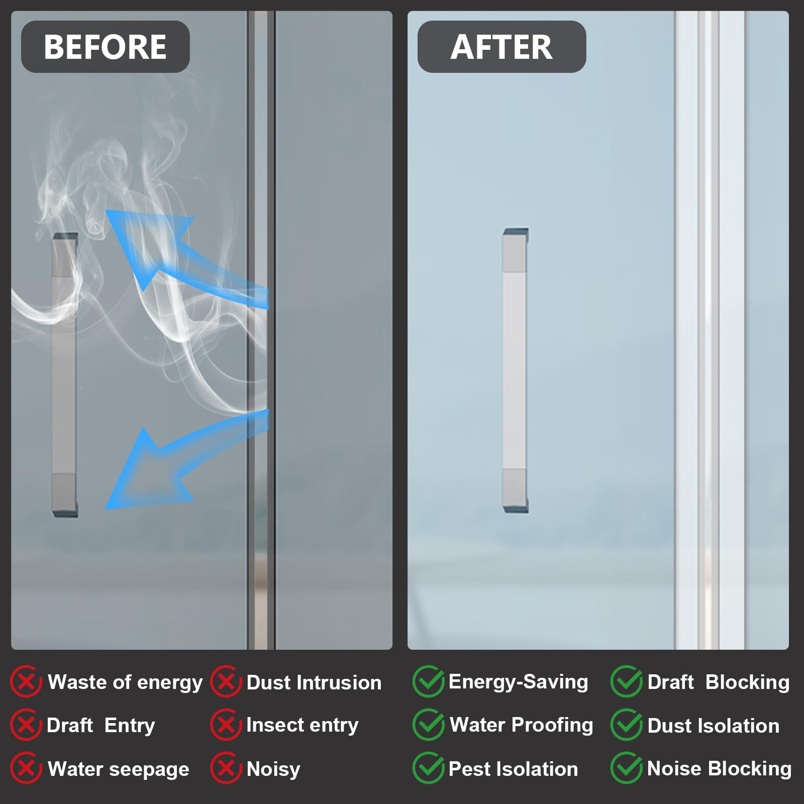 - [Multi Functional Application] Effective Draft , insulation against water splash、dust and noise , insects out for door side gaps. The weather stripping door seal can also save energy,Effectively stops cold outside airflow from entering the room(It can also be keeping the hot air out when summer rolls ), it can be widely used in the gaps and side of garage doors, front doors, sliding doors, shower doors, glass windows, dog doors, wardrobe doors, etc. It is a good choice for your home life.