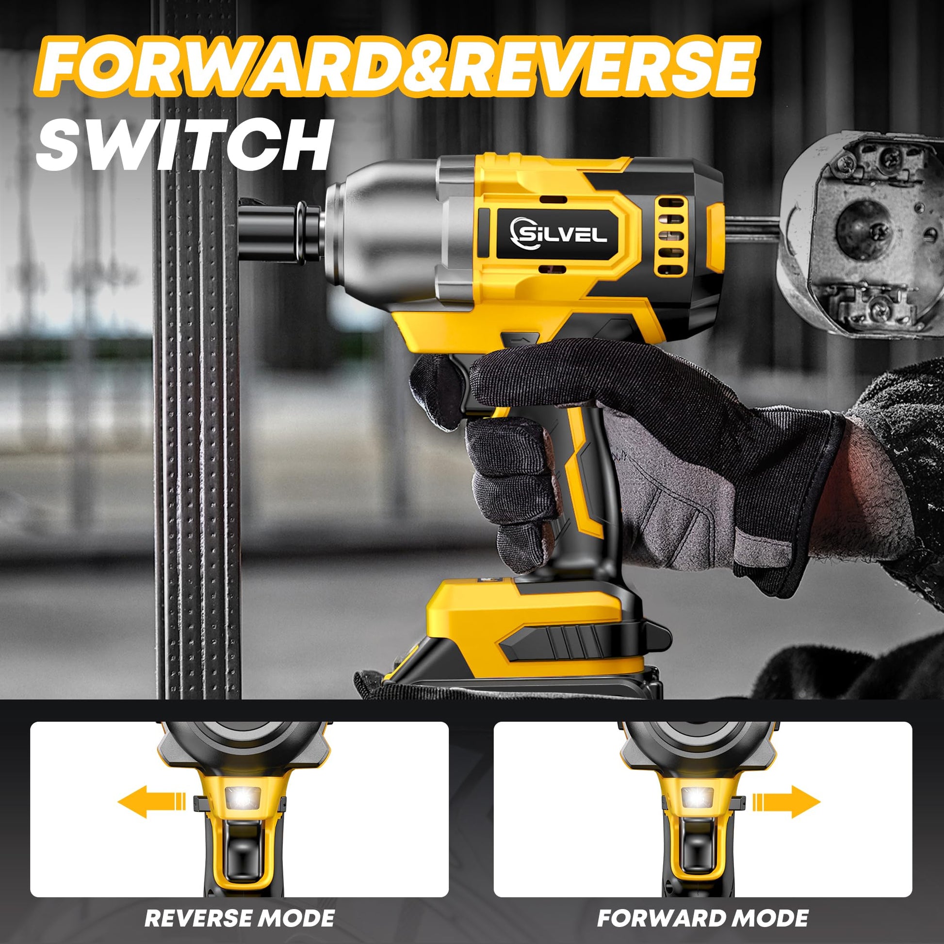 - ใ๐๐จ๐ฐ๐๐ซ๐๐ฎ๐ฅ ๐๐จ๐ญ๐จ๐ซใThe max torque is 480 Ft-lbs(650N.m) and the speed is 3200RPM. Equipped with a high spec powerful motor, SILVEL cordless impact wrench can help you easily loosen or tighten various types of bolts or nuts, including nuts or screws for truck, automobile, scaffolding, etc. Compared with brushed motors, brushless motor have strength in better performance and longer durability, with less noise and avoid sparks. Absolutely is a good partner for your work!